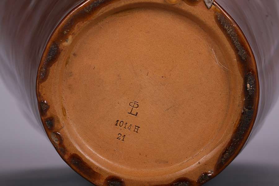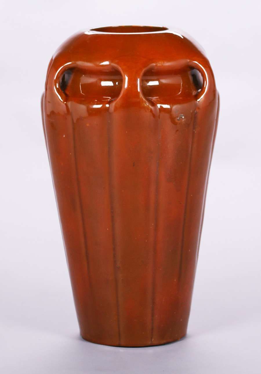Huge Wannopee Pottery floor vase (New Milford, CT) with six handles c1900. Minor kiln kiss otherwise perfect condition. 20"h x 11.5"d SOLD