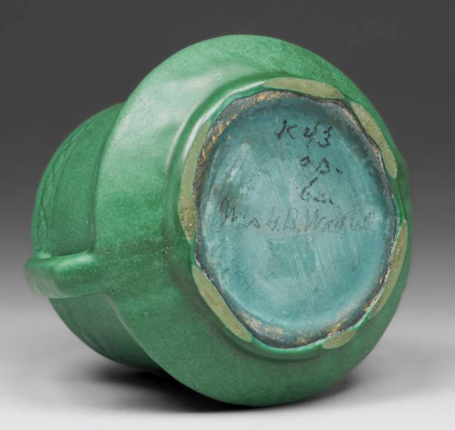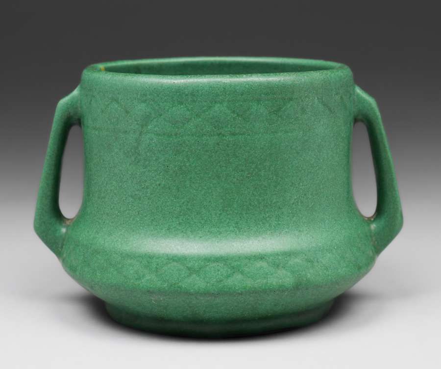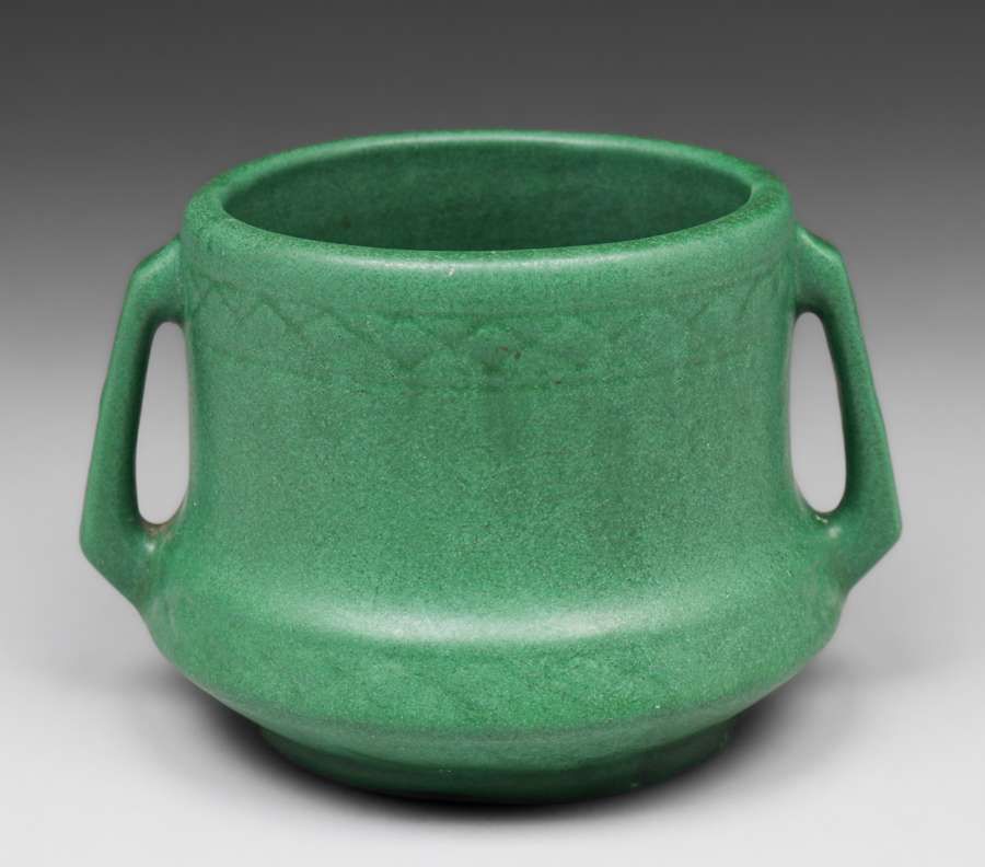 - Small Weller Pottery Two-Handled Matte Green Jardiniere c1910