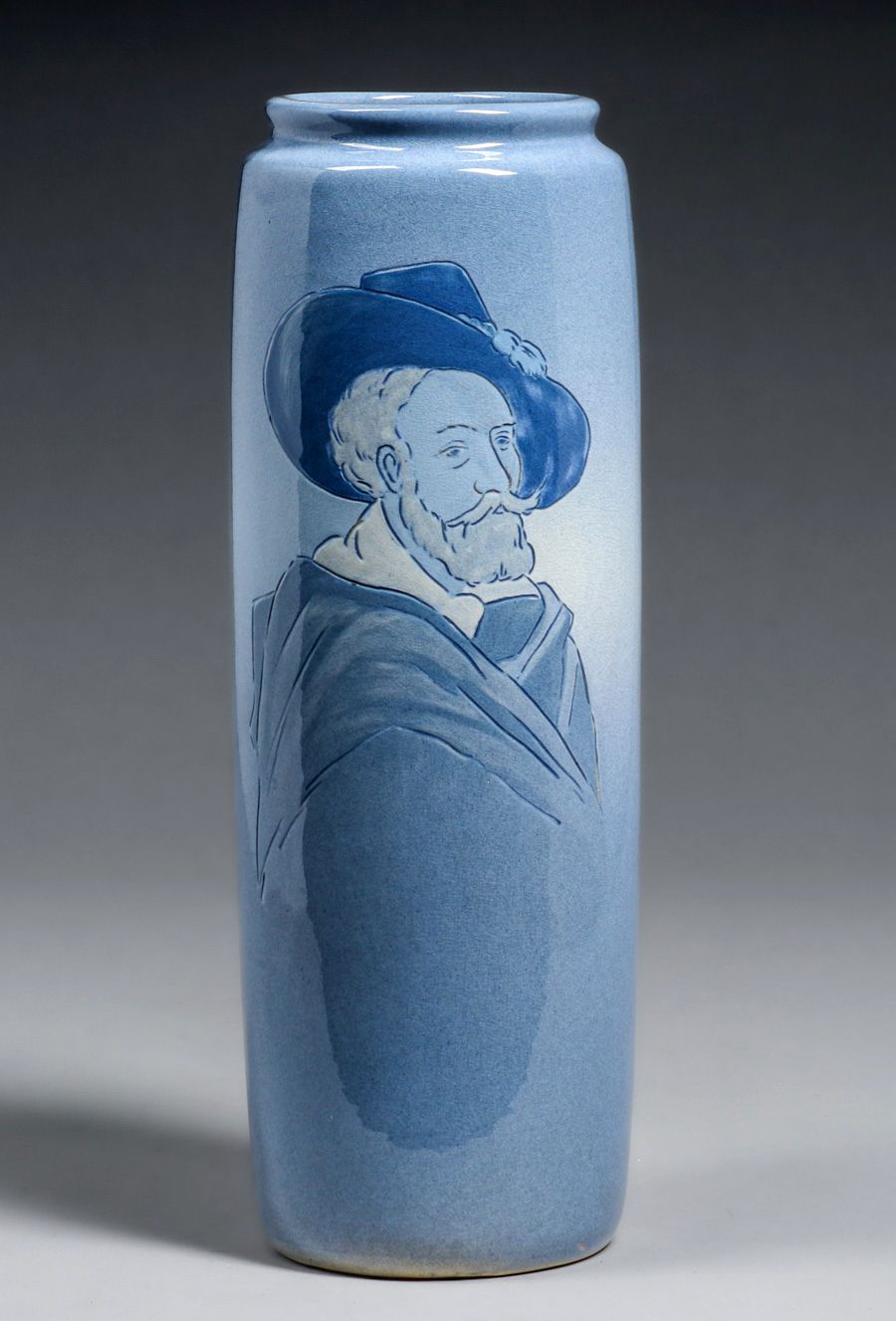 Tall Weller Blue Dickensware Vase c1900s. Signed. Perfect condition. 14.25"h x 4.5"d SOLD