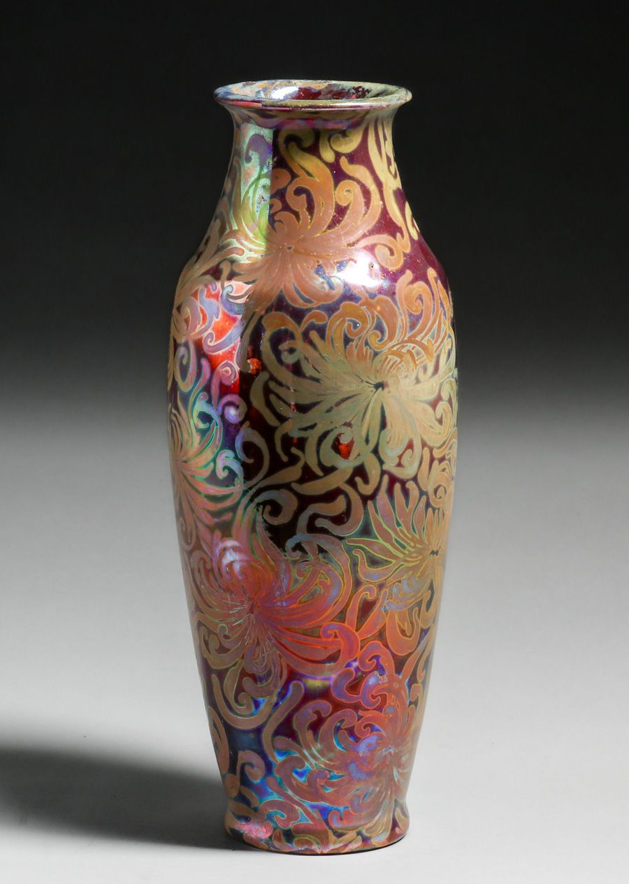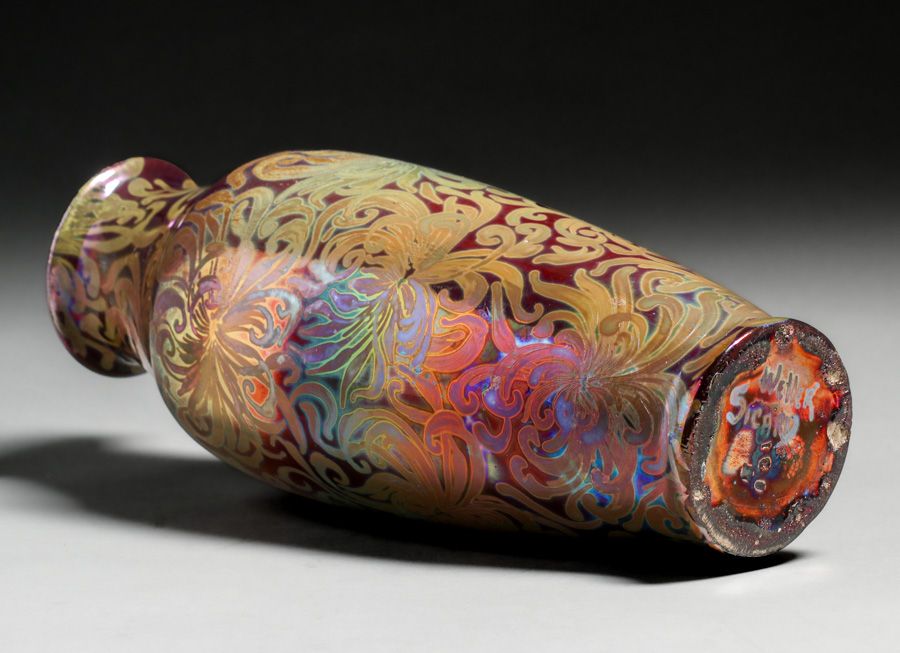 - Tall Weller Sicard 14"h Iridescent Vase c1905