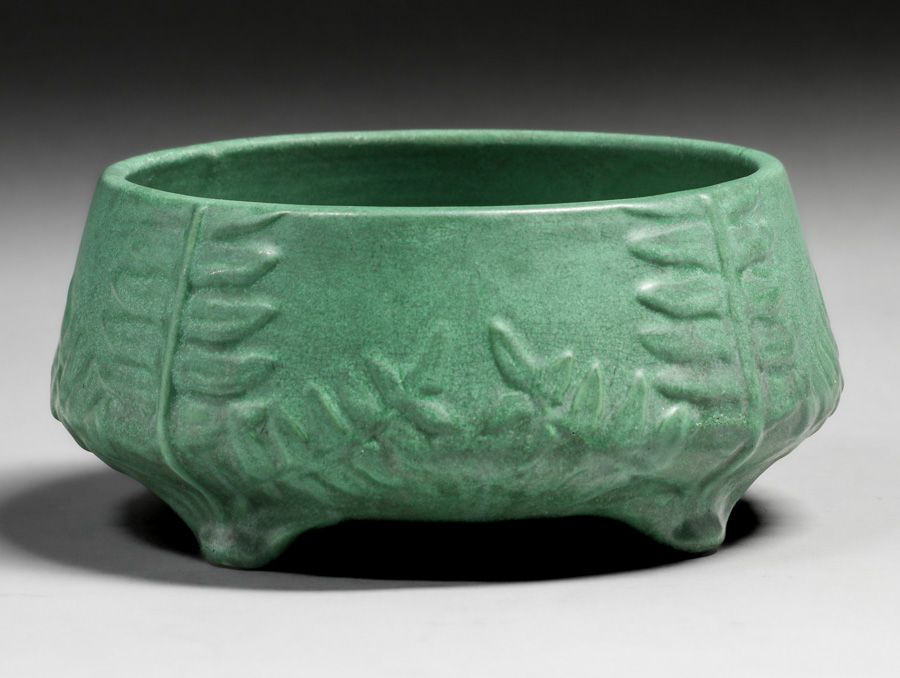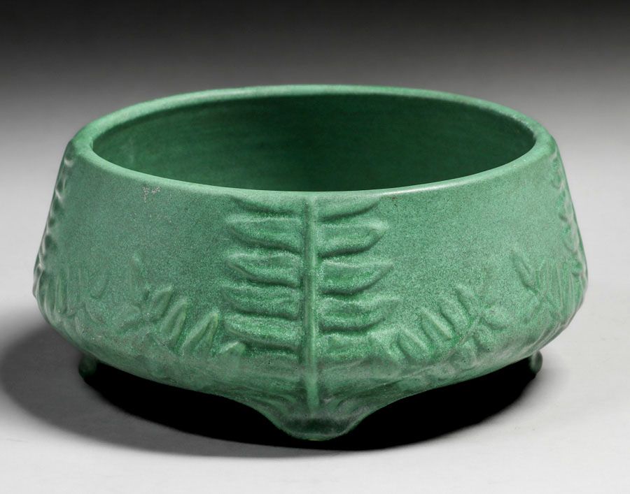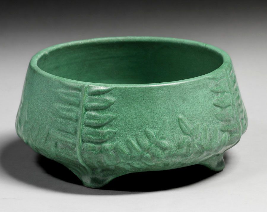Weller Bedford Matte Green Fernery c1910s. Unsigned. Perfect condition. 8"d x 4"h SOLD