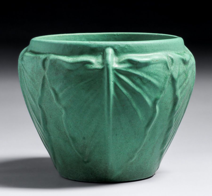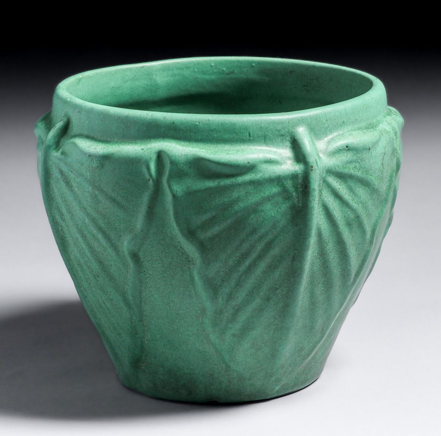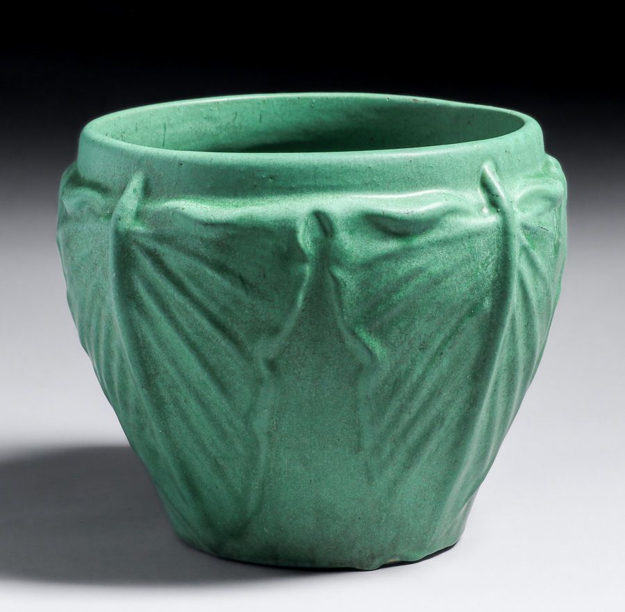 Weller Bedford Matte Green Jardiniere c1910. Unsigned. Perfect condition. 8"h x 10"d SOLD
