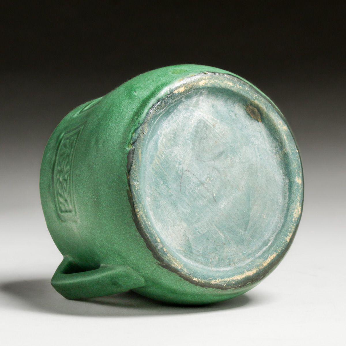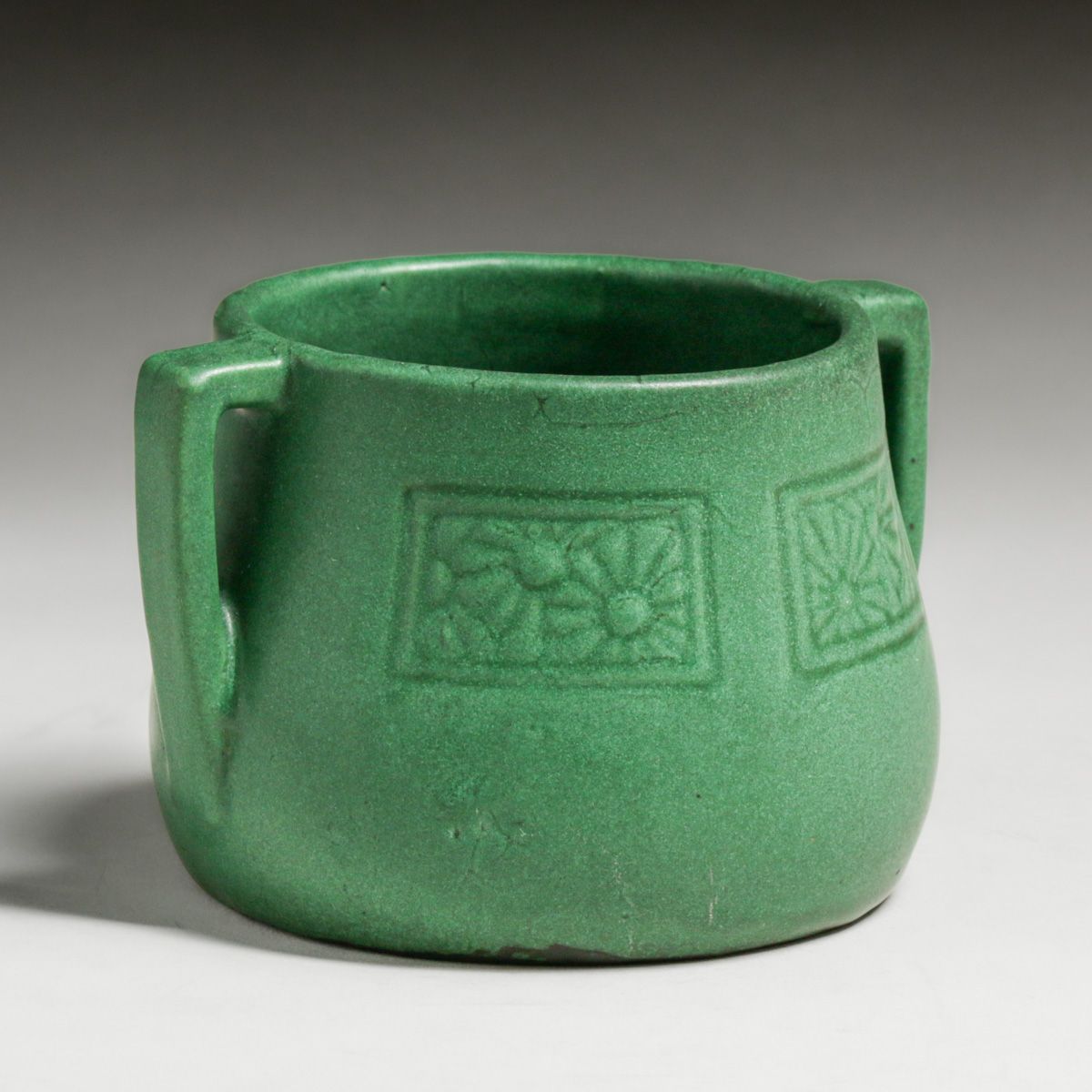 Weller Bedford Matte Green Two-Handled Vase c1910. Unsigned. Perfect condition. 5.25"w x 3.5"h