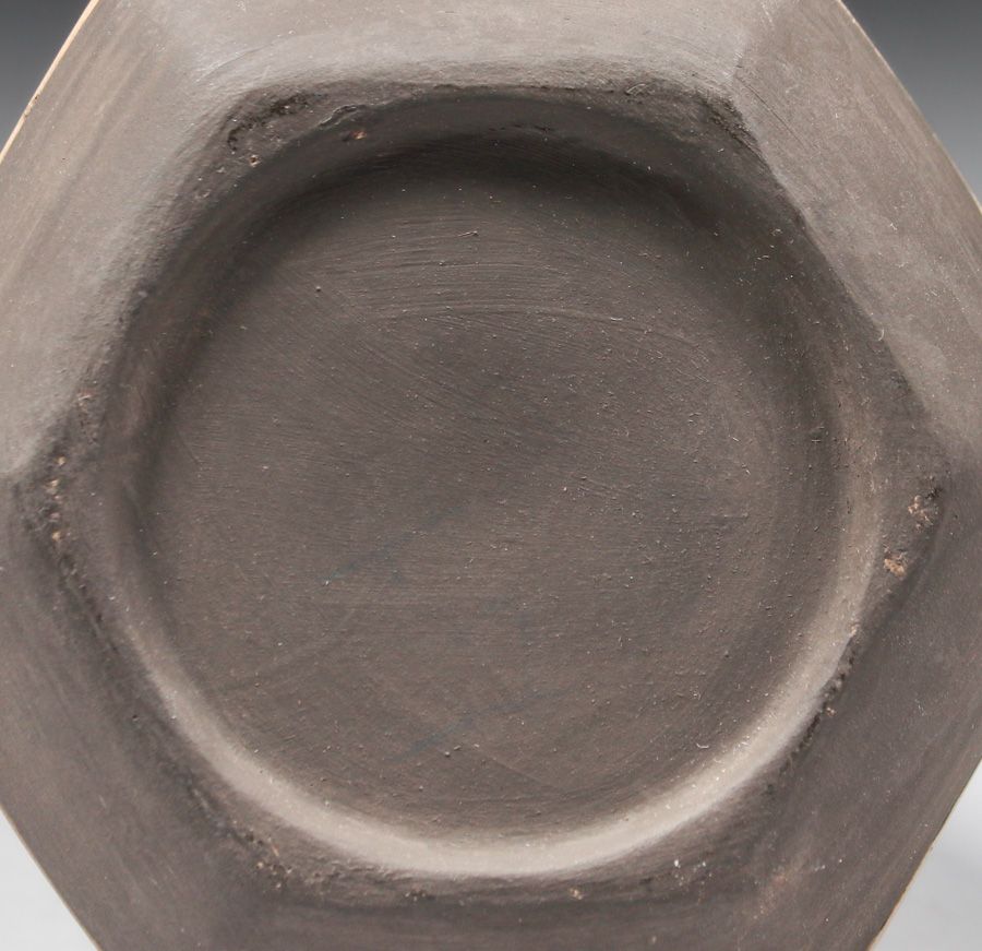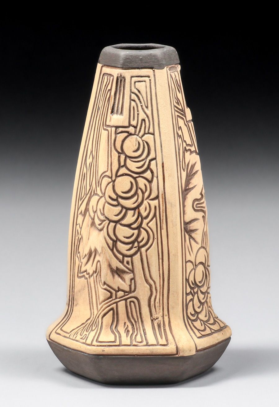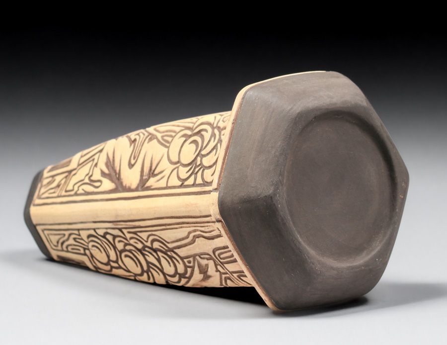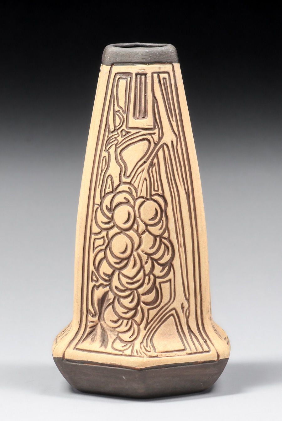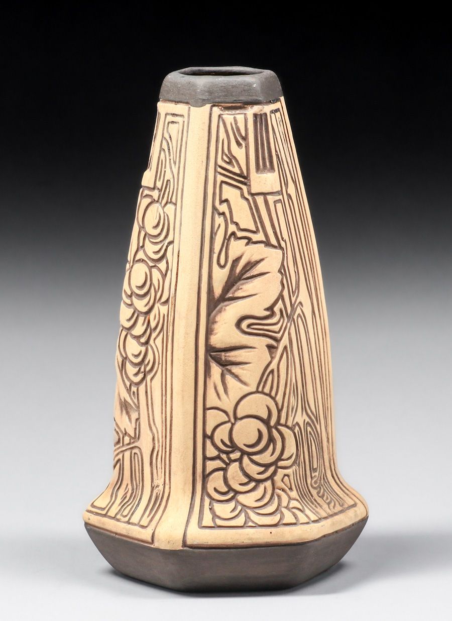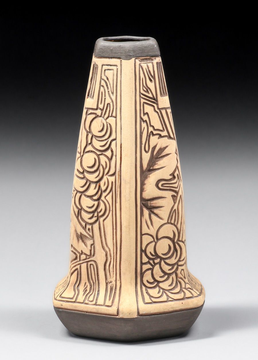 Weller Burntwood Hexagonal Vase c1910s. Unsigned. Perfect condition. 8"h x 4"d SOLD
