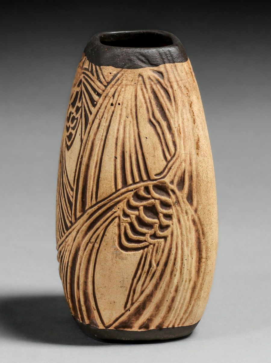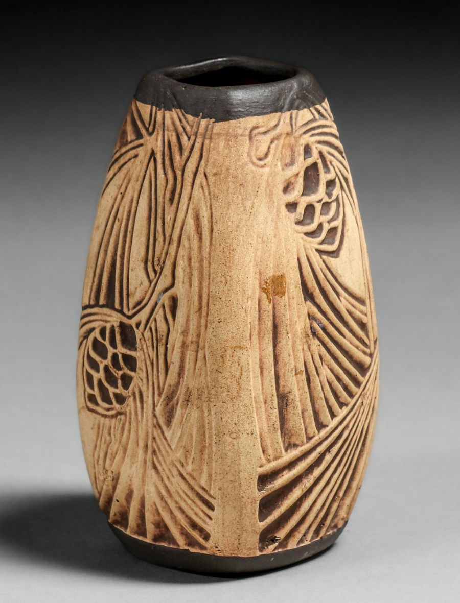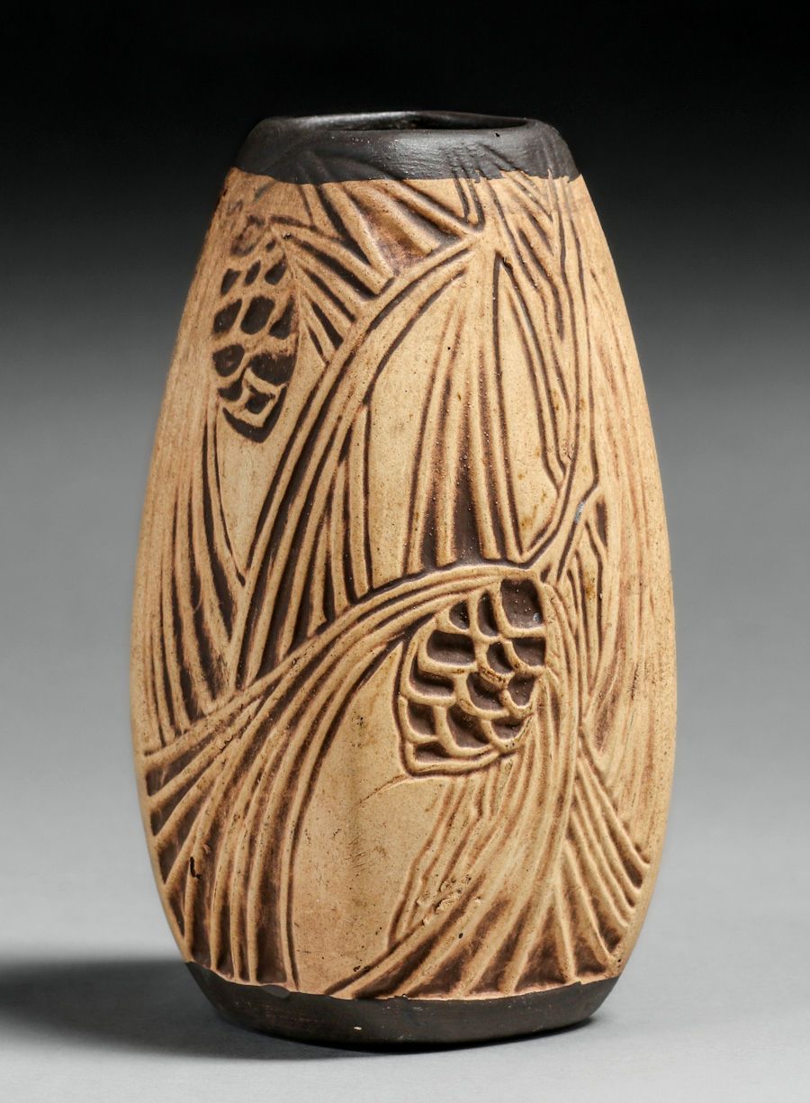 - Weller Burntwood Pinecone Vase c1920s