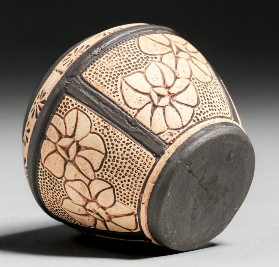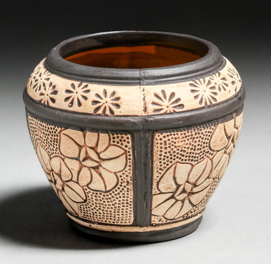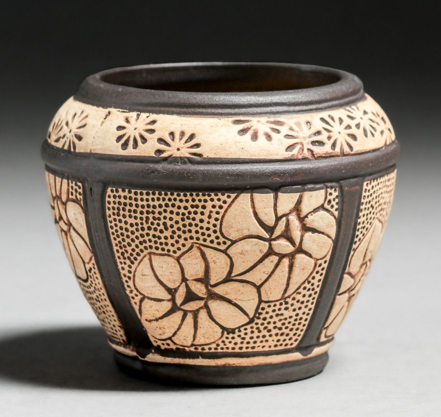 Weller Claywood Daisy Vase c1910s. Unsigned. Perfect condition. 3.75"h x 4"d SOLD