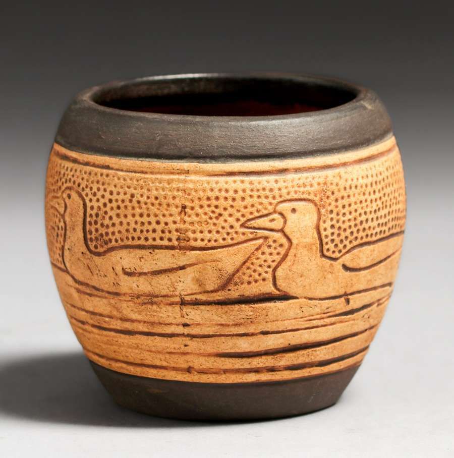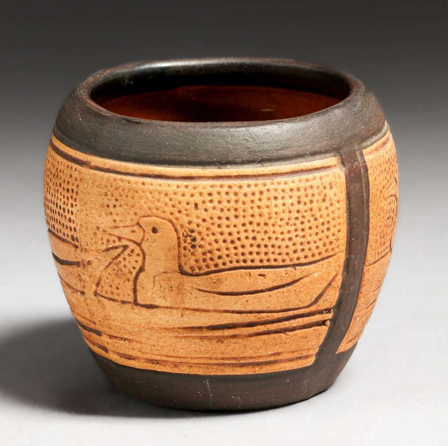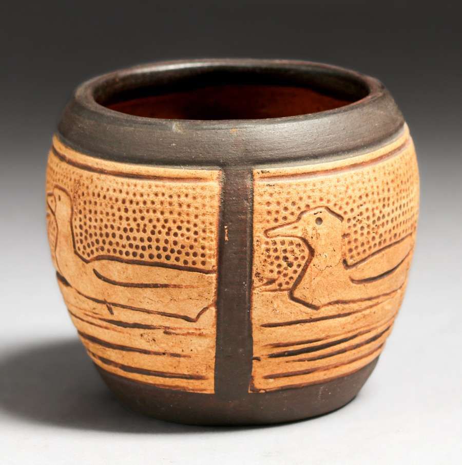 Weller Claywood Duck Vase c1910. Unsigned. Perfect condition. 2.75"h x 3.25"d SOLD