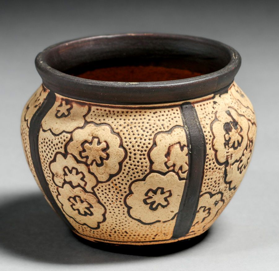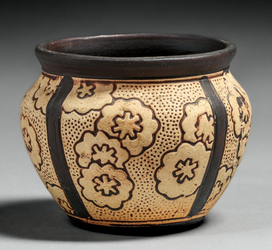 Weller Claywood Four-Panel Vase c1910s. Unsigned. Perfect condition. 3.5"h x 4.5"d SOLD