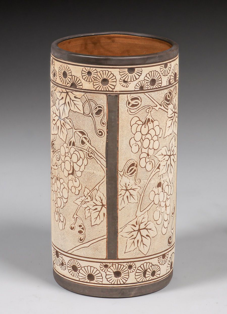 - Weller Claywood Grapevine Umbrella Stand c1910s