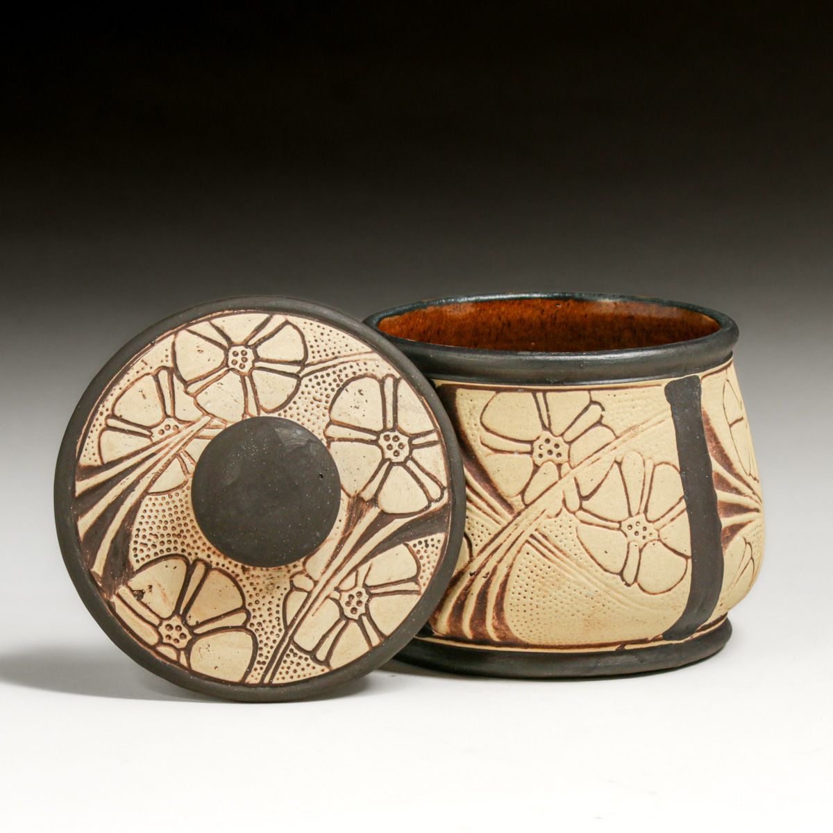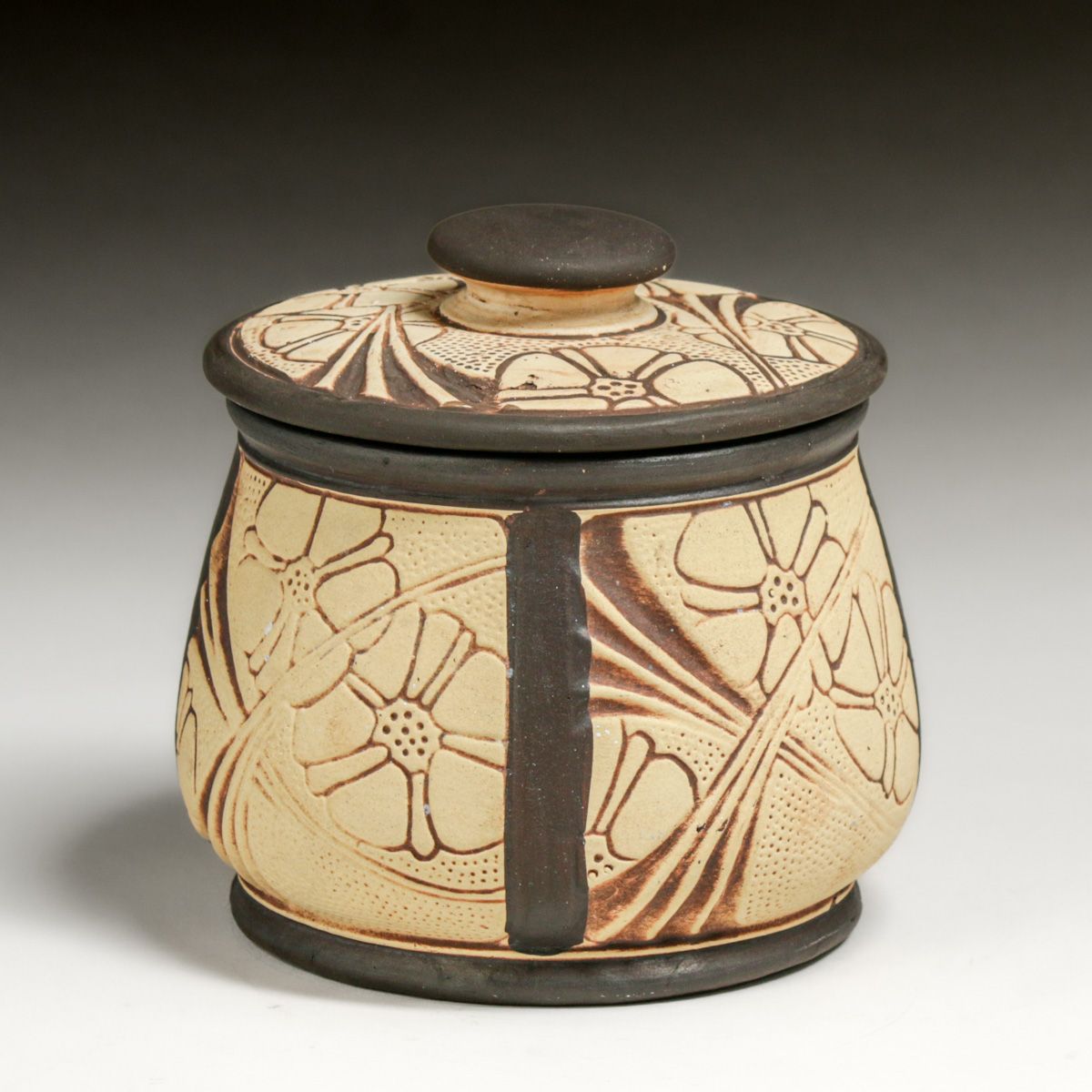 Weller Claywood Humidor c1910. Unsigned. Perfect condition. 5.5"h x 6"d