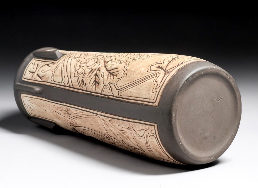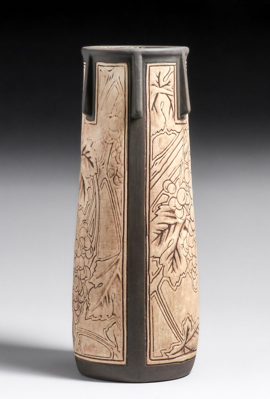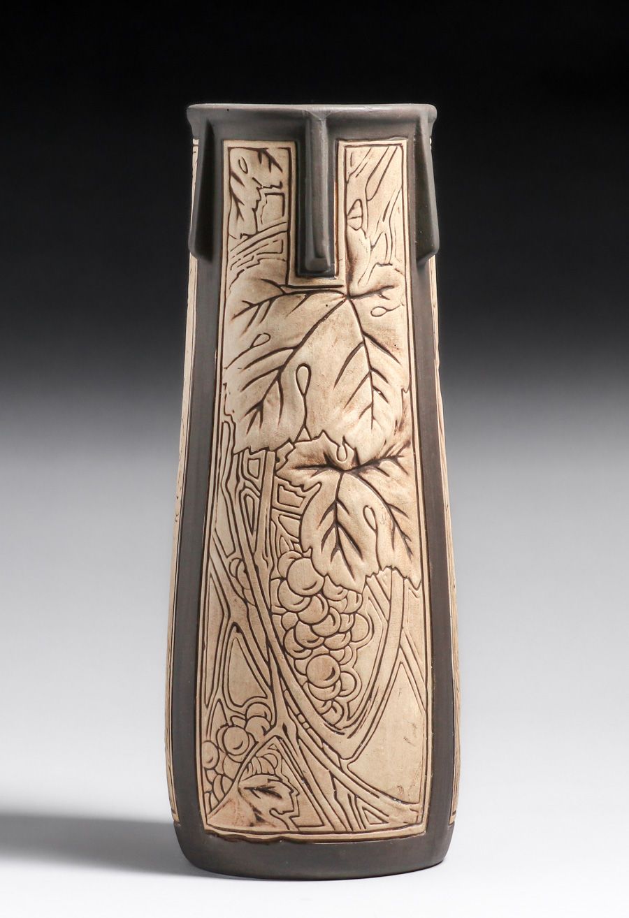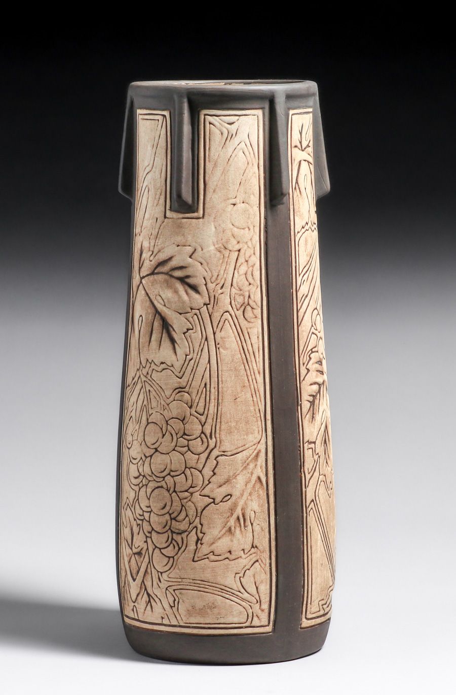 - Weller Claywood Large Buttress Grapevine 16"h Vase c1910