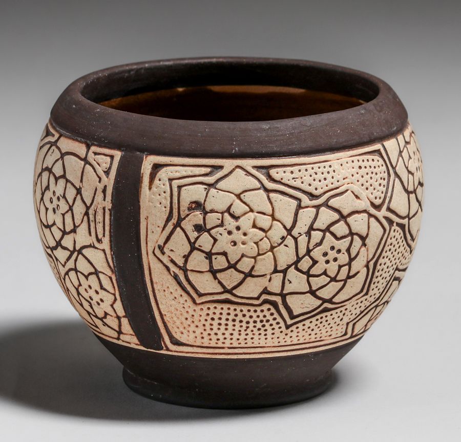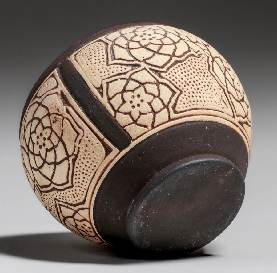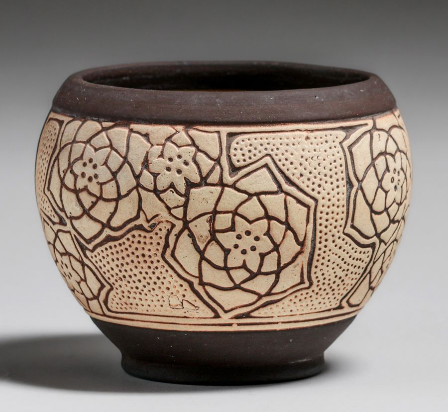Weller Claywood Small Vase c1920s. Unsigned. Perfect condition. 4.25d x 3 5/8h inches SOLD
