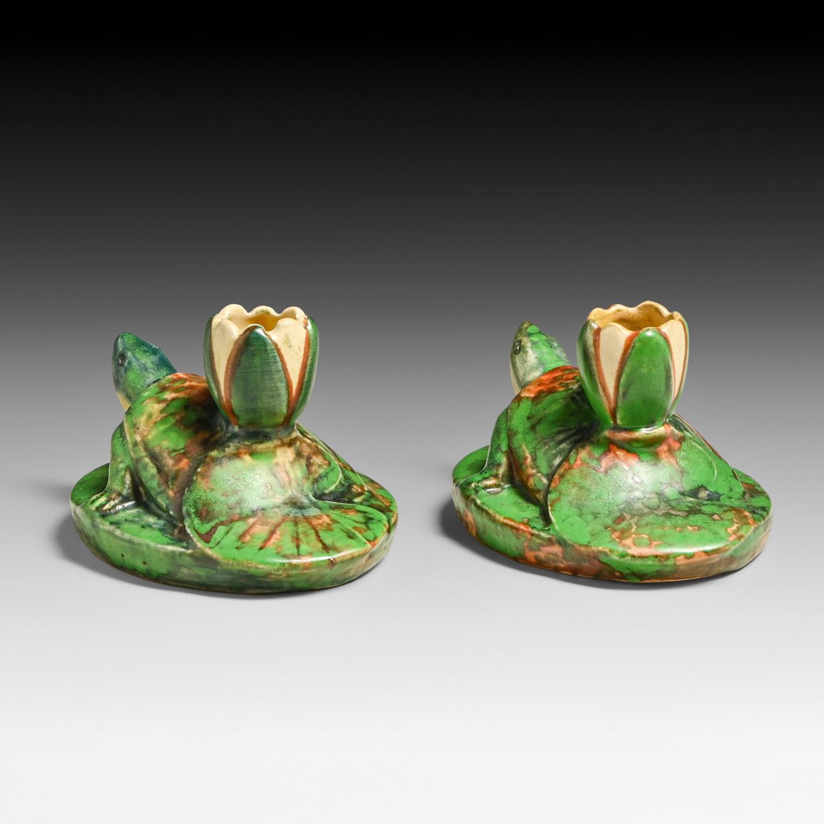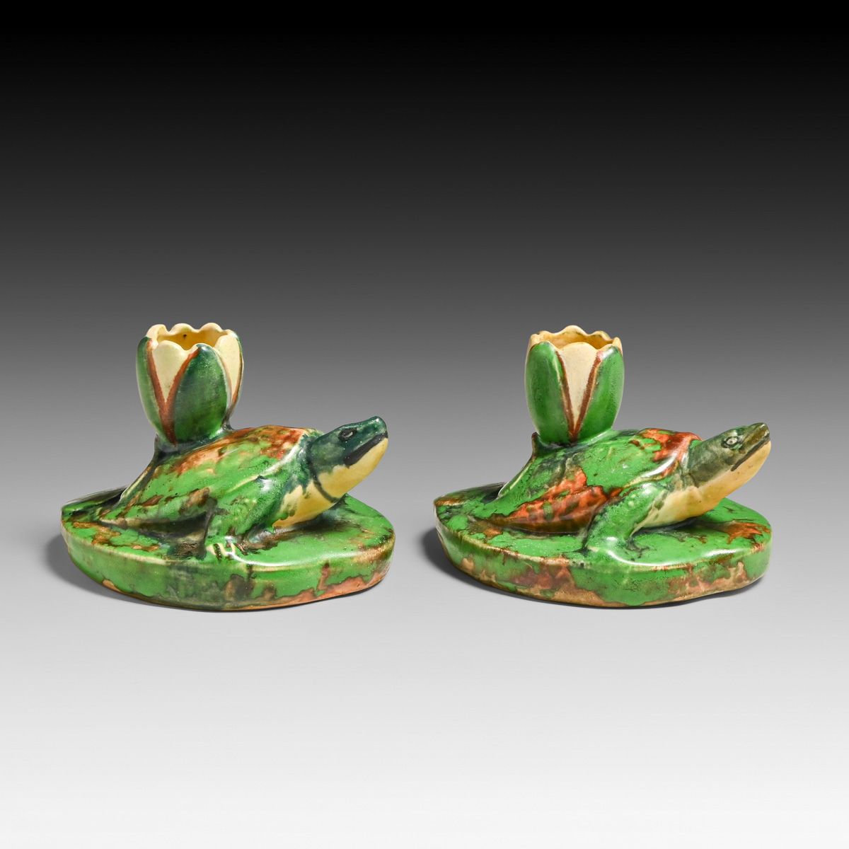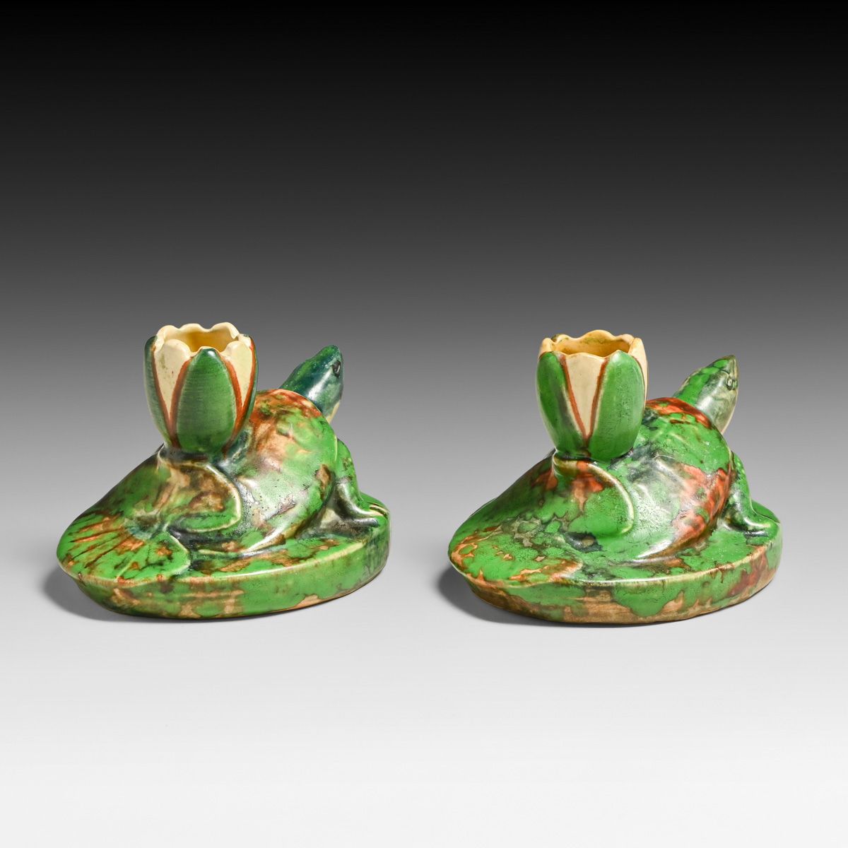 - Weller Coppertone Turtle Pair Candlesticks c1910s