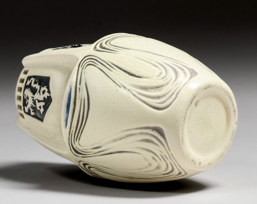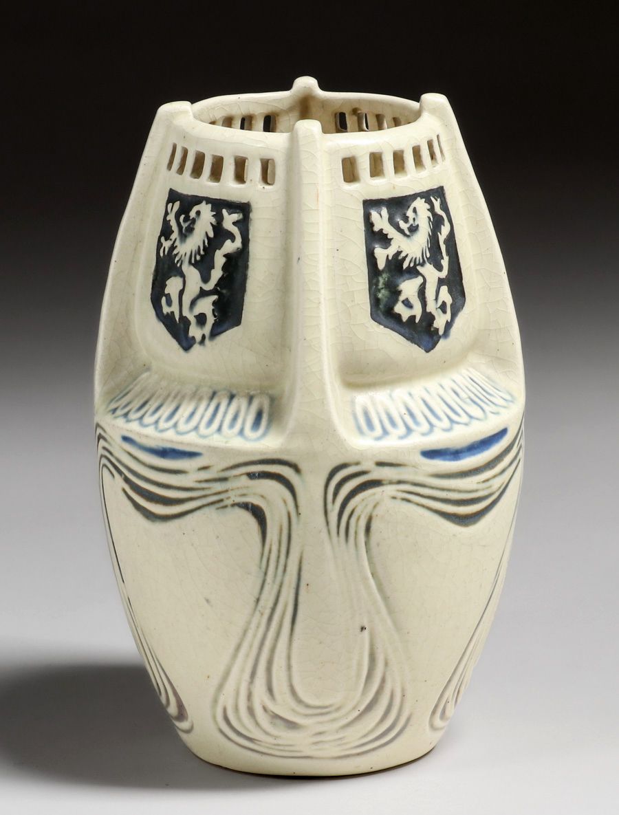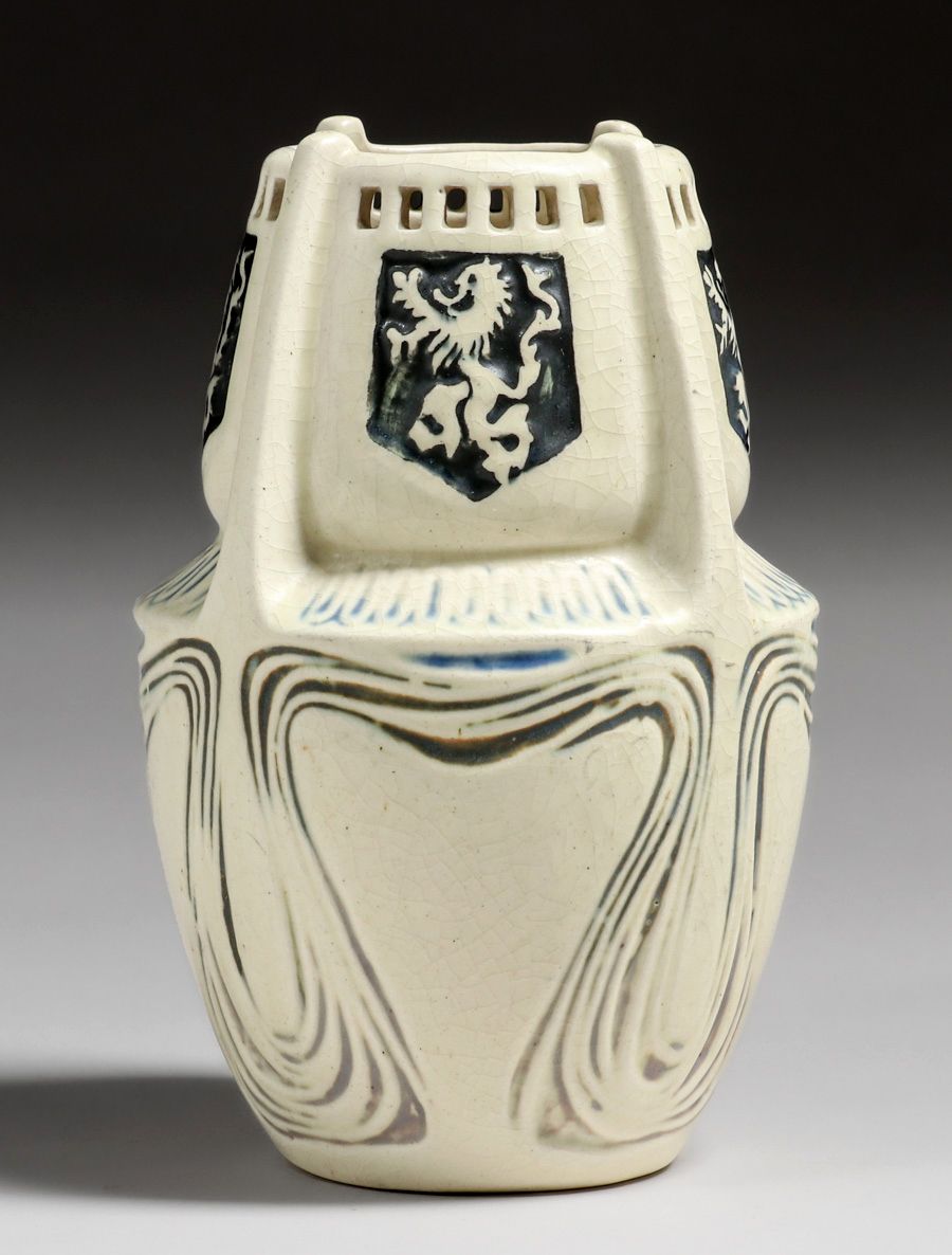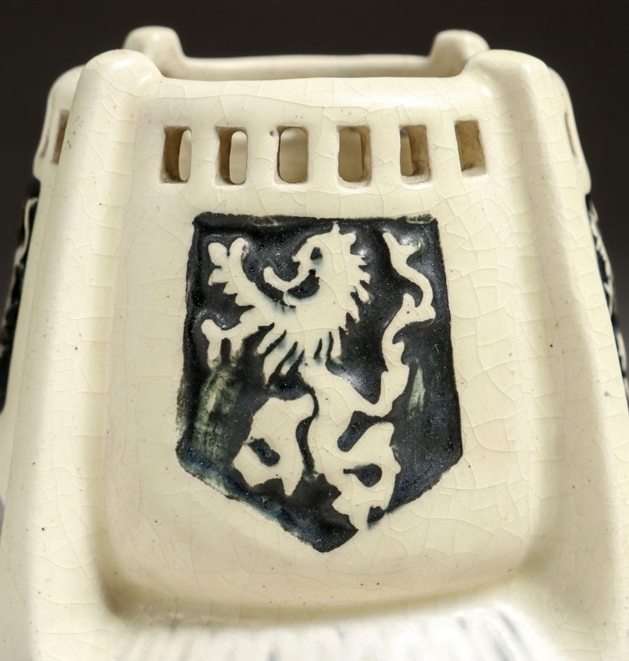 - Weller Creamware Coat of Arms Cutout Vase c1915