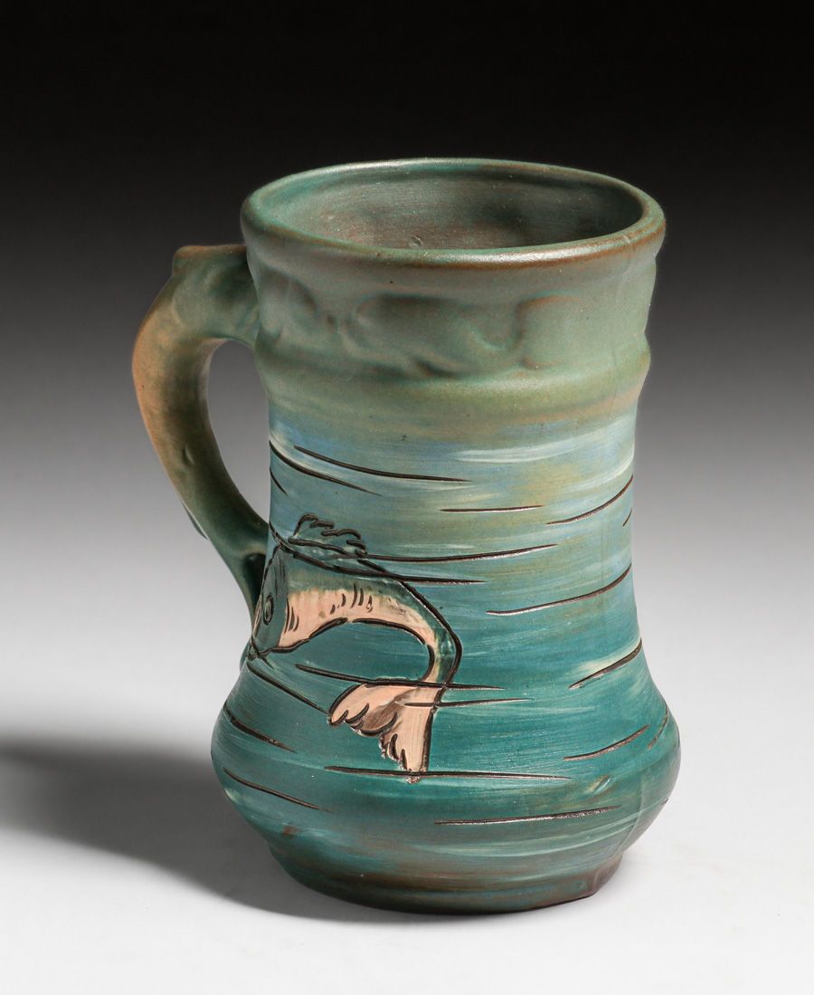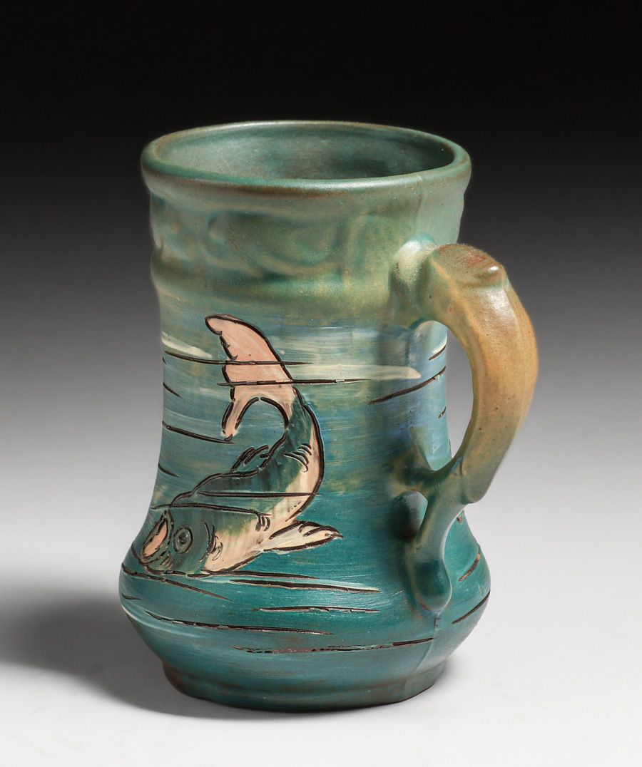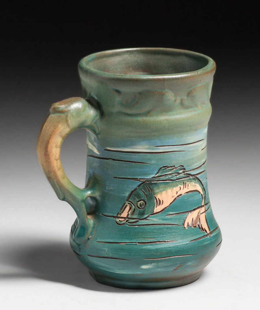 - Weller Dickens Ware Carved Fish Mug c1900s