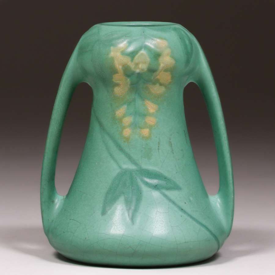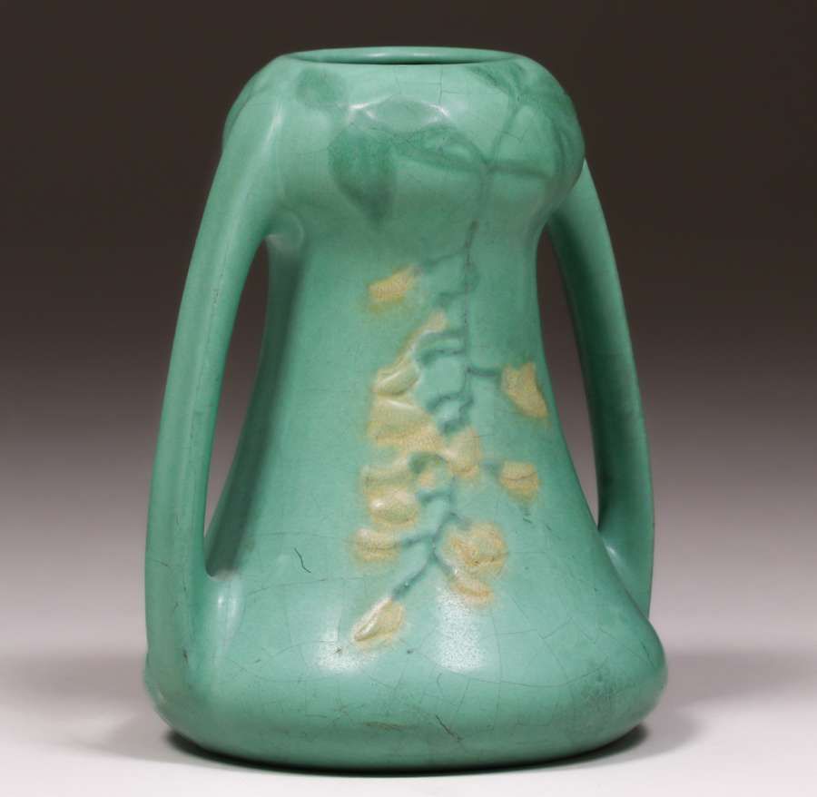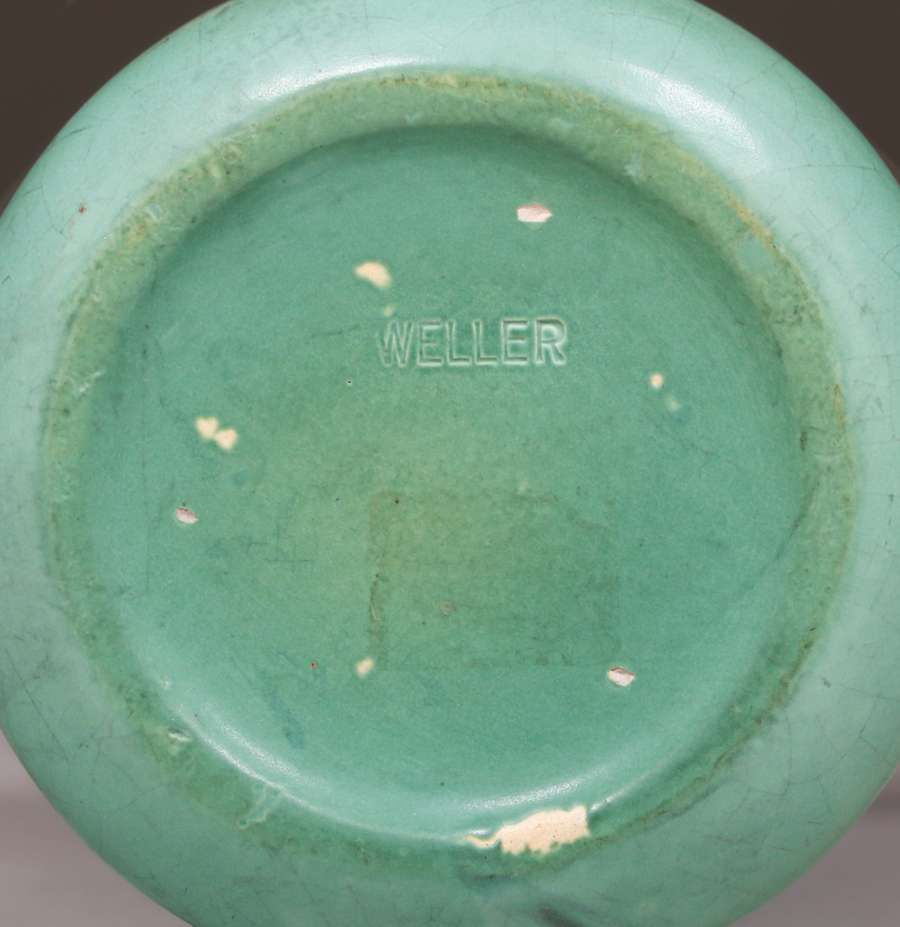 Weller Fru Russet Matte Green Vase c1910. Heavily crazed, otherwise perfect condition. 6.75"h x 5.25"d SOLD