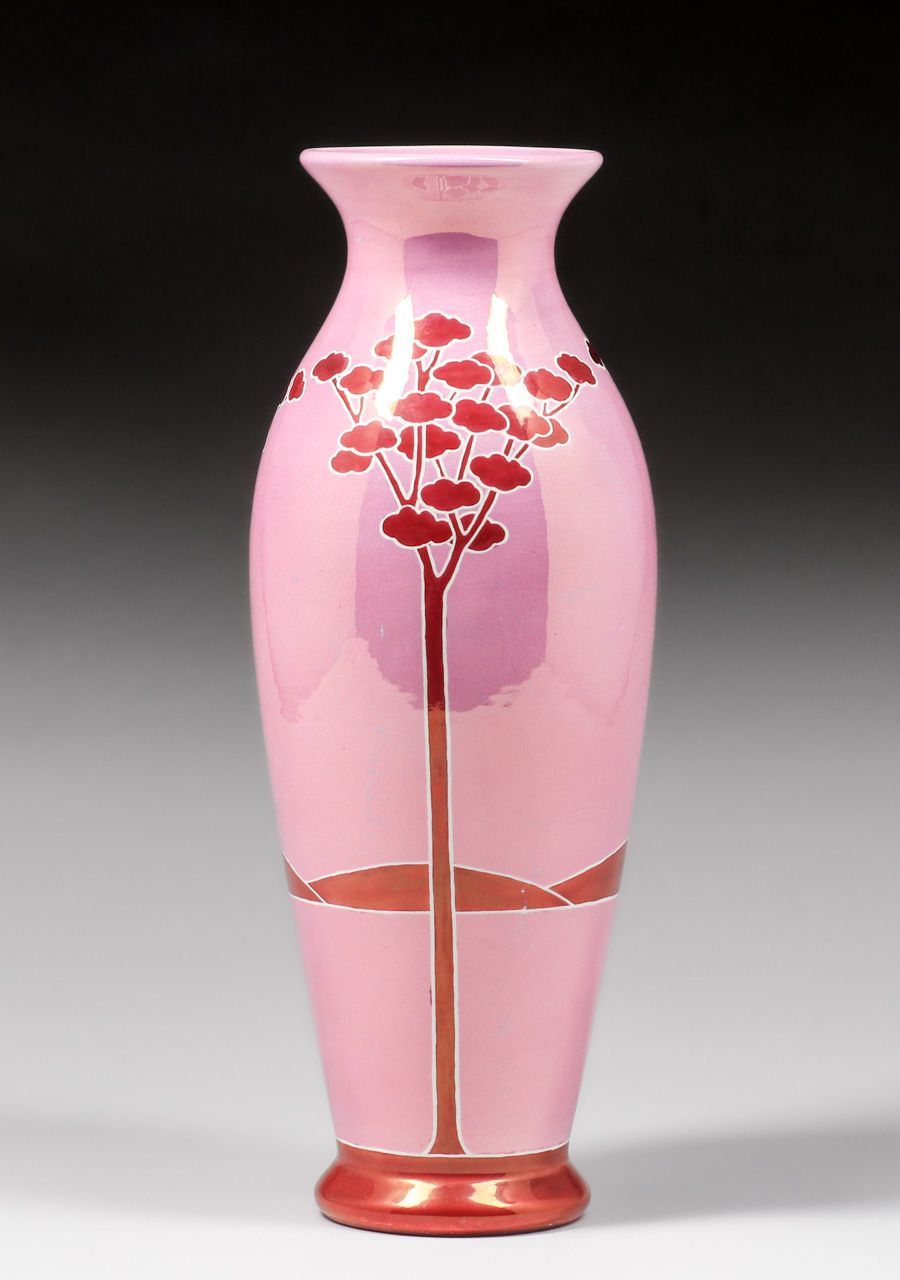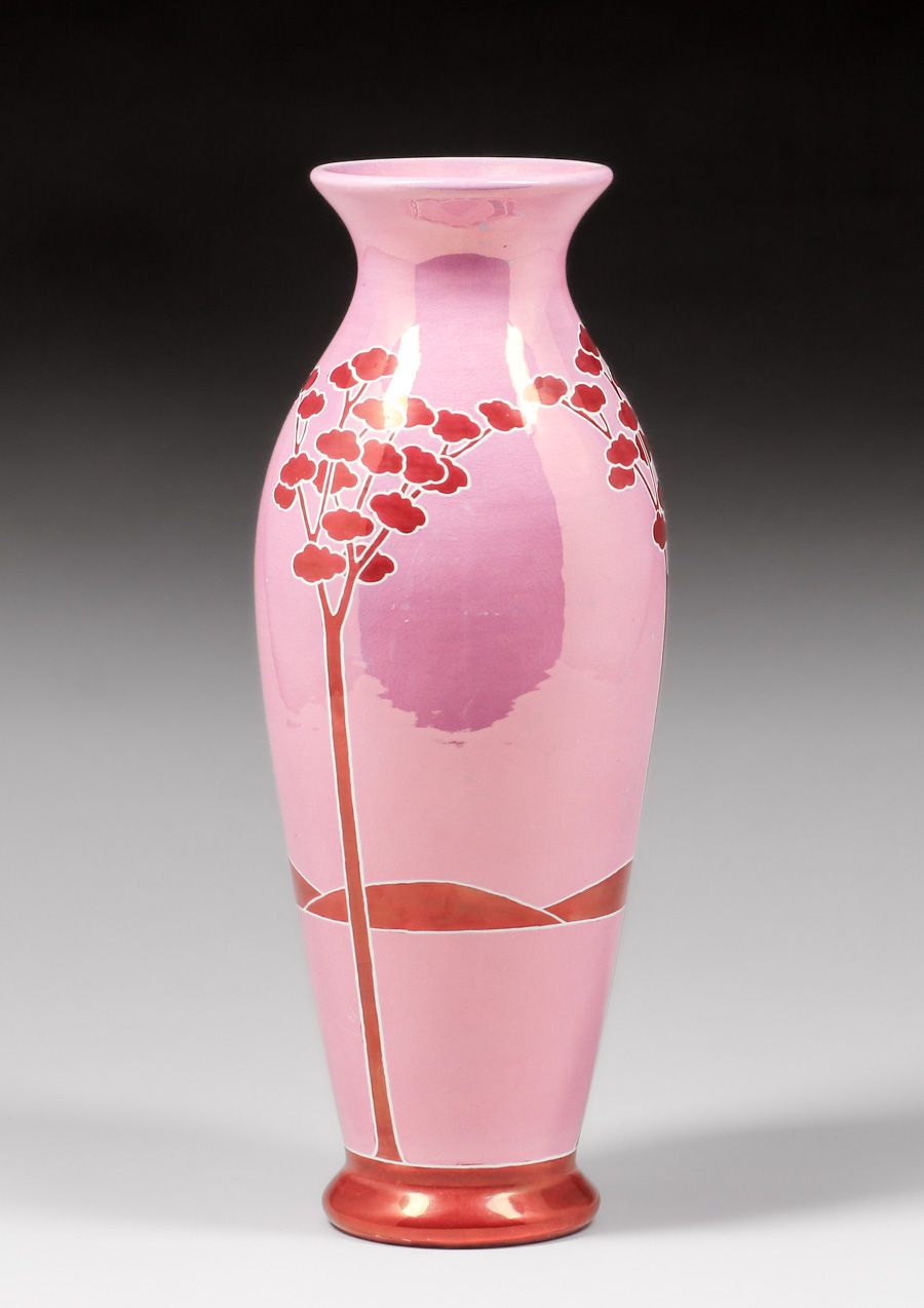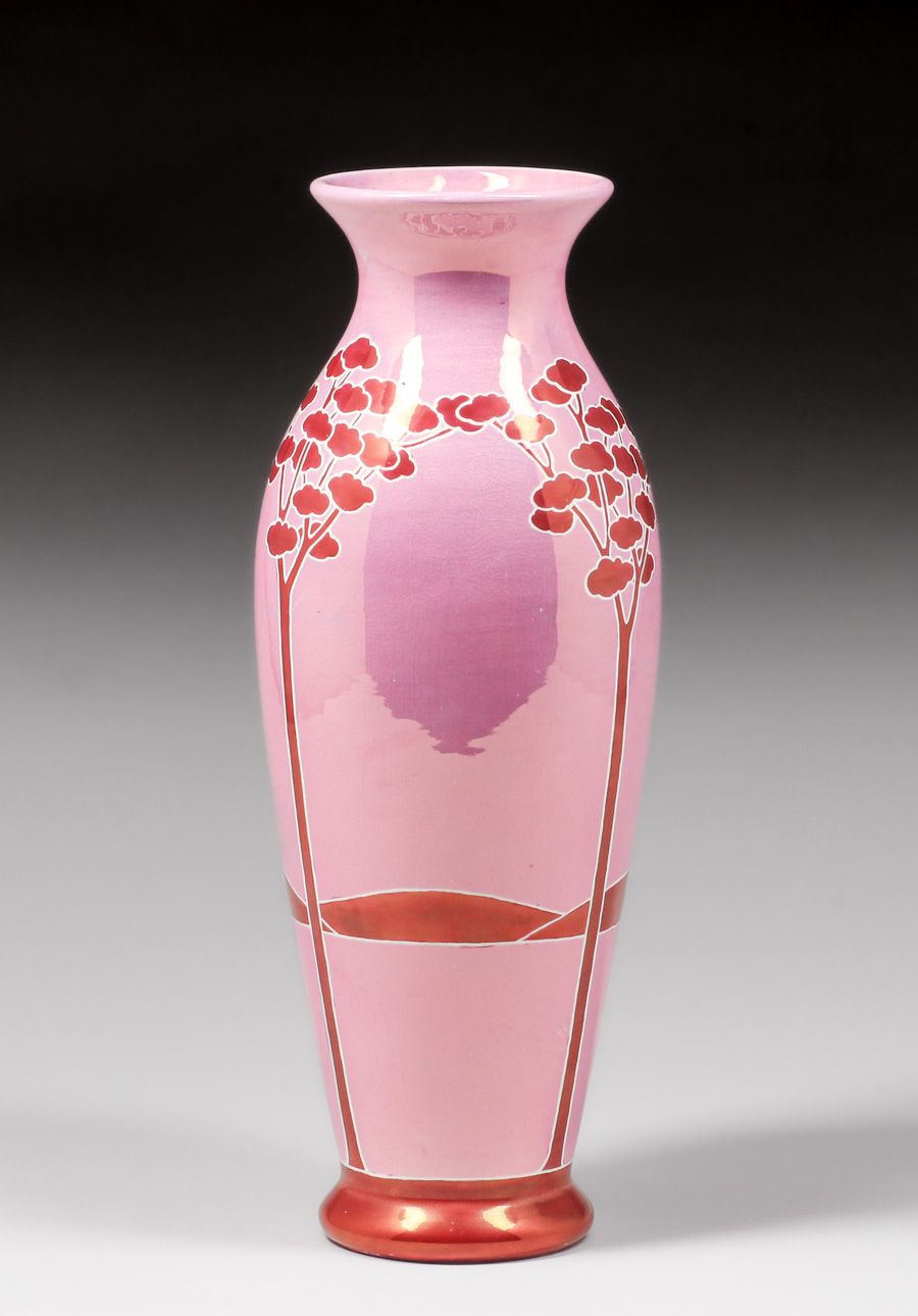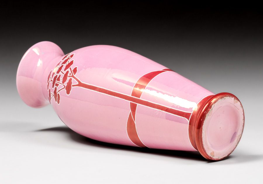 Weller Pink Marengo Luster Vase c1920s. Unsigned. This scarce line rarely surfaces in such pristine condition. 13"h x 4.5"d SOLD