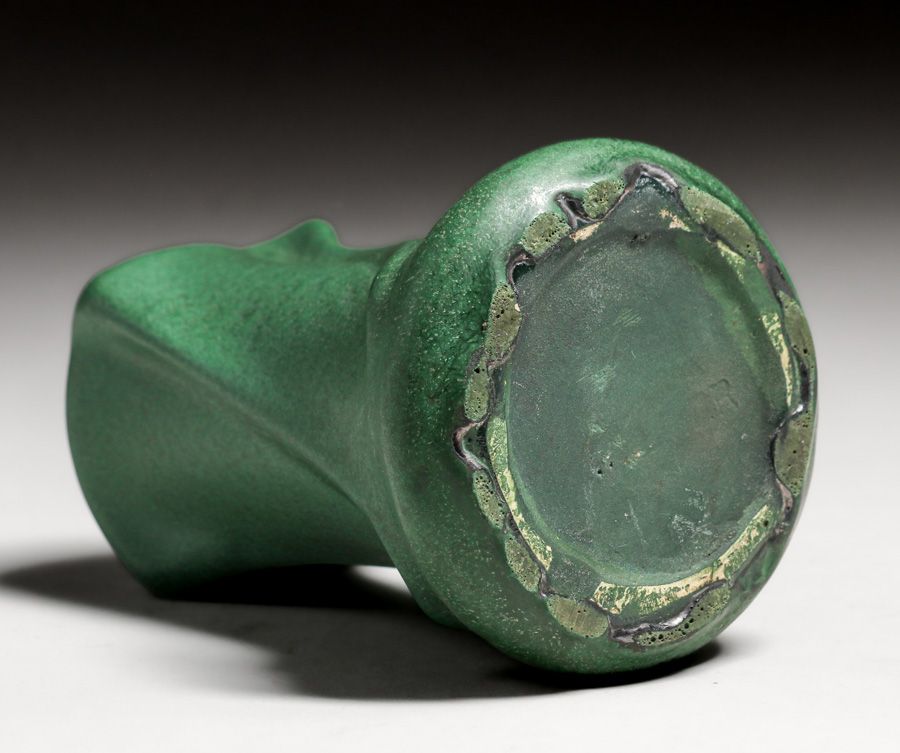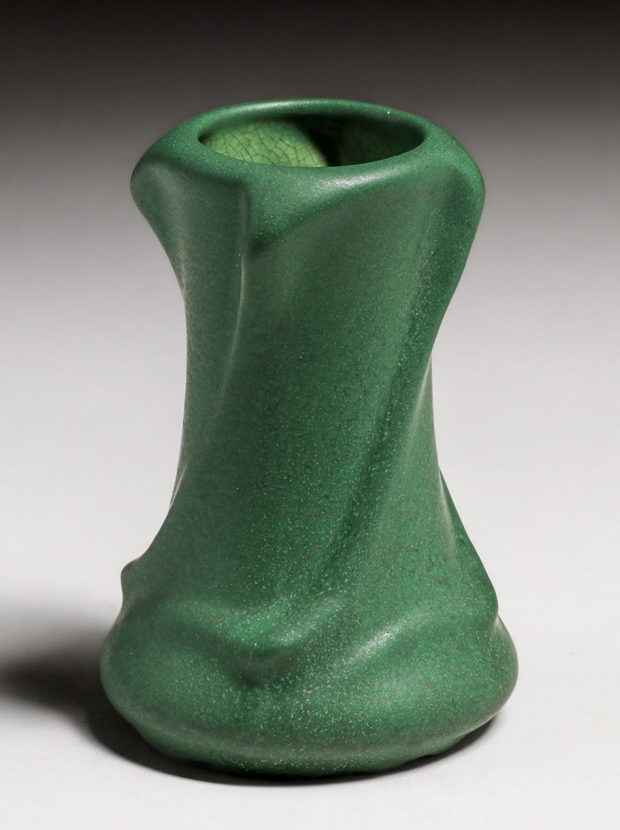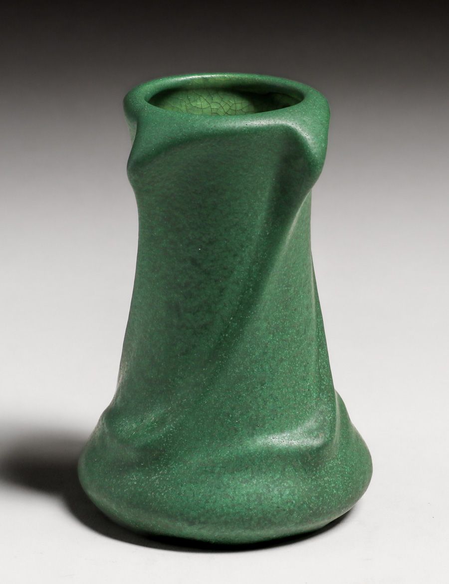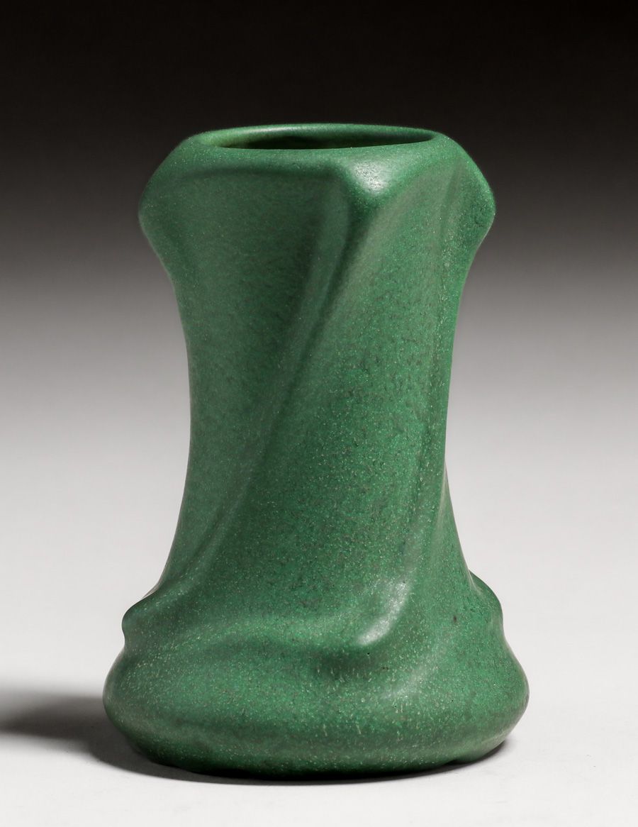 Weller Pottery Bedford Matte Green Twist Vase c1910. Signed. Perfect condition. 5.25"h x 3.5"d SOLD