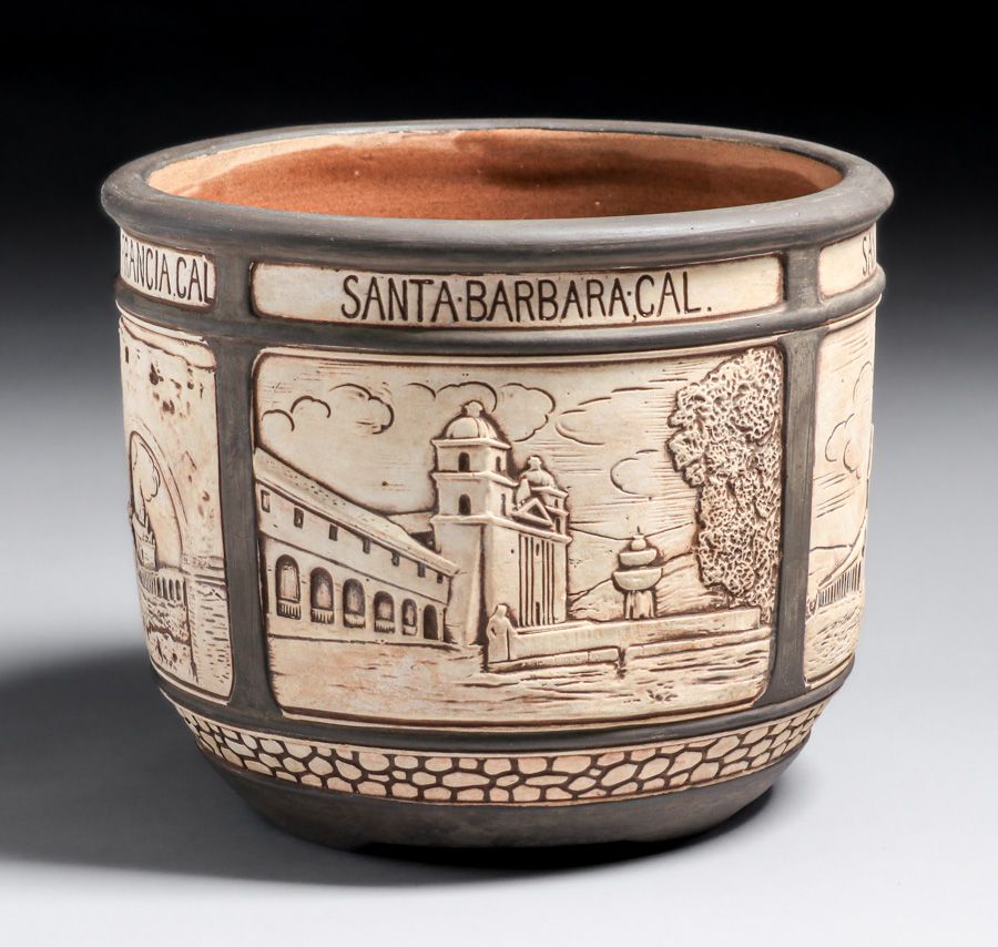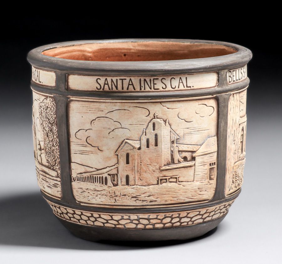 - Weller Pottery California Missions Jardiniere c1910