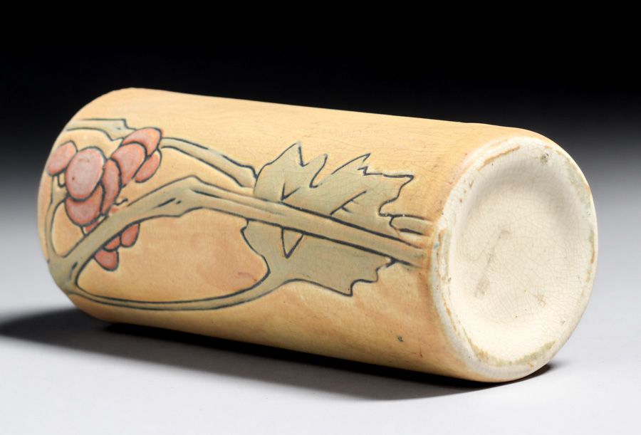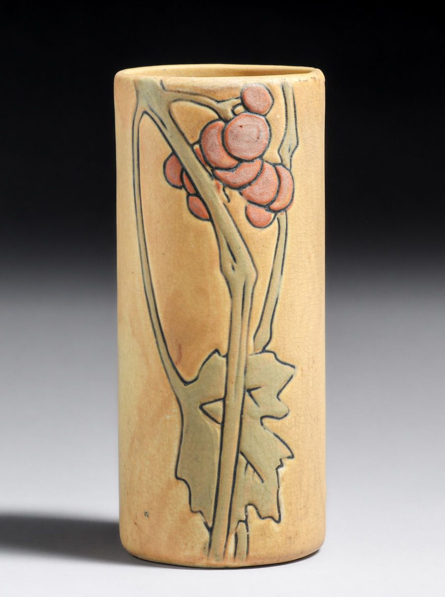 - Weller Pottery Etched Mat Grapevine Cylinder c1910s