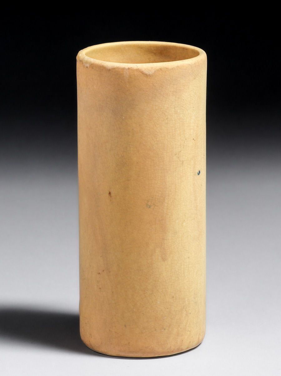 Weller Pottery Etched Mat Grapevine Cylinder c1910s. Signed. A few glaze bubbles near rim. Perfect condition. 6.75"h x 3"d SOLD