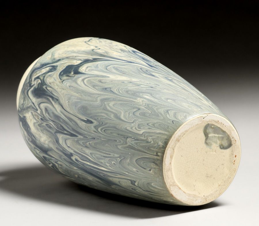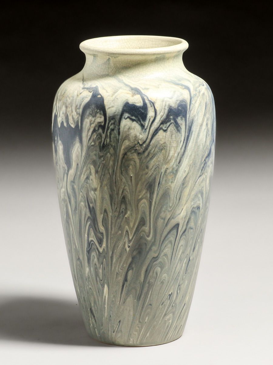 Weller Pottery Matte Glazed Bo Marblo Marbleized Vase c1915. Large matte glazed pieces of Weller Bo Marblo Marbleized are quite rare. Signed. Perfect condition. 13.5"h x 6.5"d SOLD