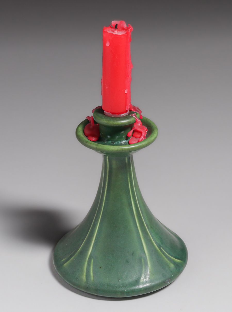 - Weller Pottery Matte Green Candlestick c1910s