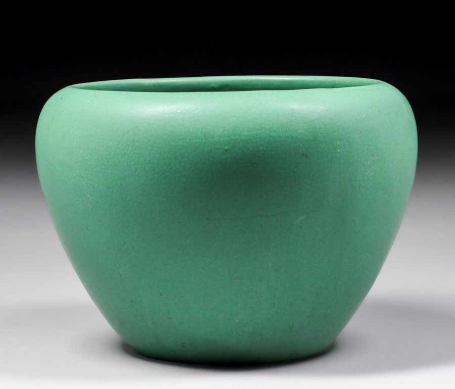 Weller Pottery Matte Green Jardiniere c1910. Unsigned. Perfect condition. 8.5"h x 11.75"d $950