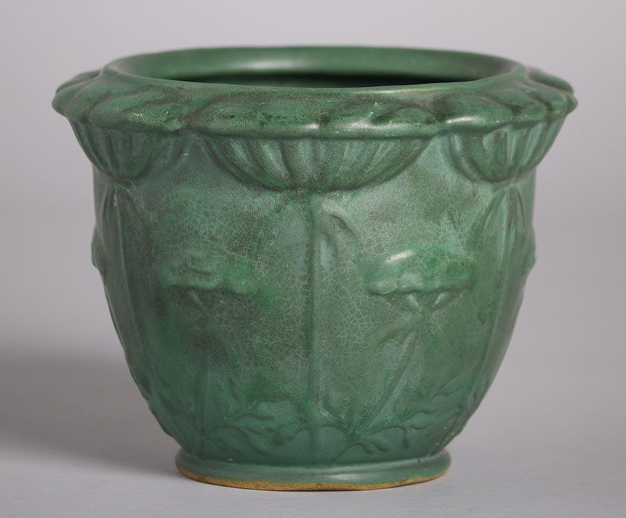 - Weller Pottery Matte Green Poppy Jardiniere