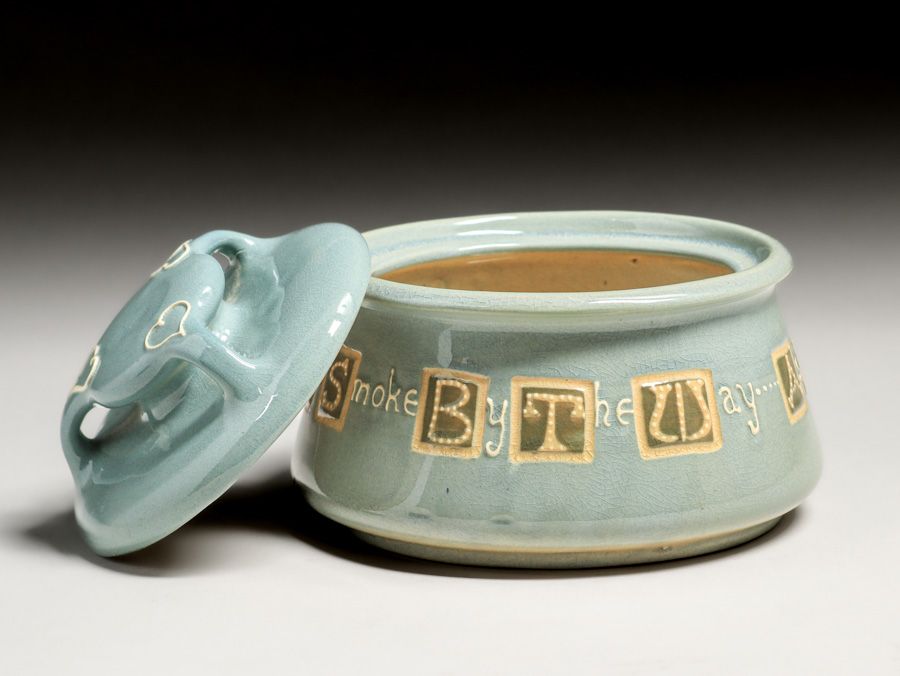 - Weller Pottery Rhead Faience Squeeze Bag Decorated Humidor c1904