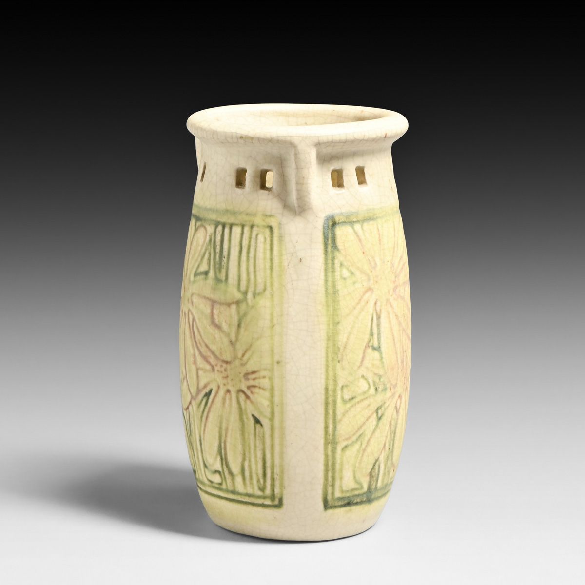 Weller Roma Cutout Vase c1910s. Unsigned. Perfect condition. 6"h x 3.25"d