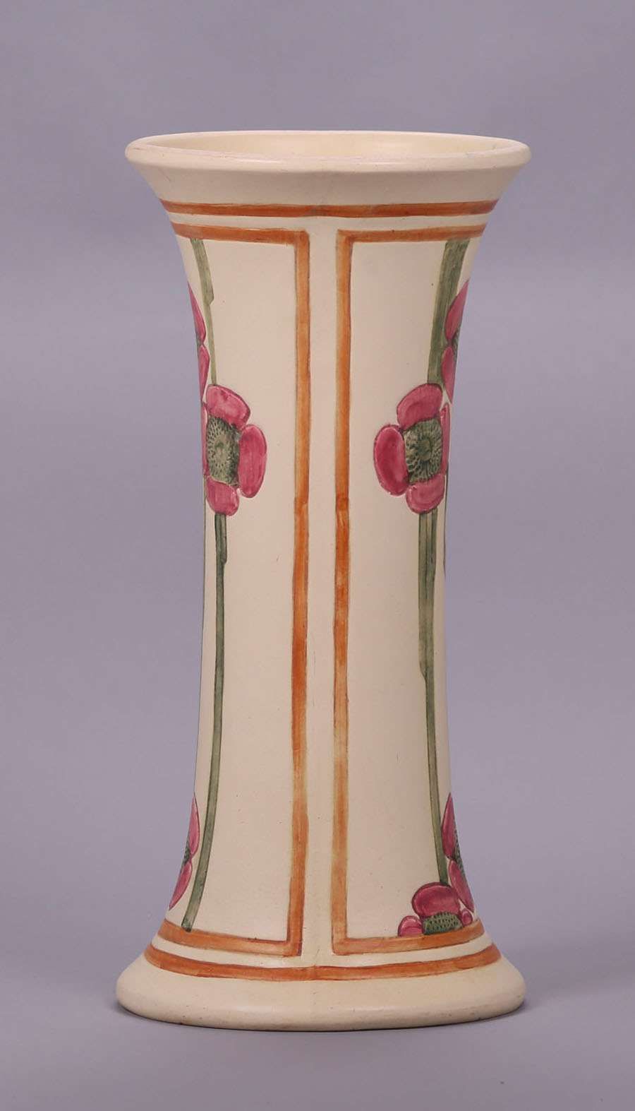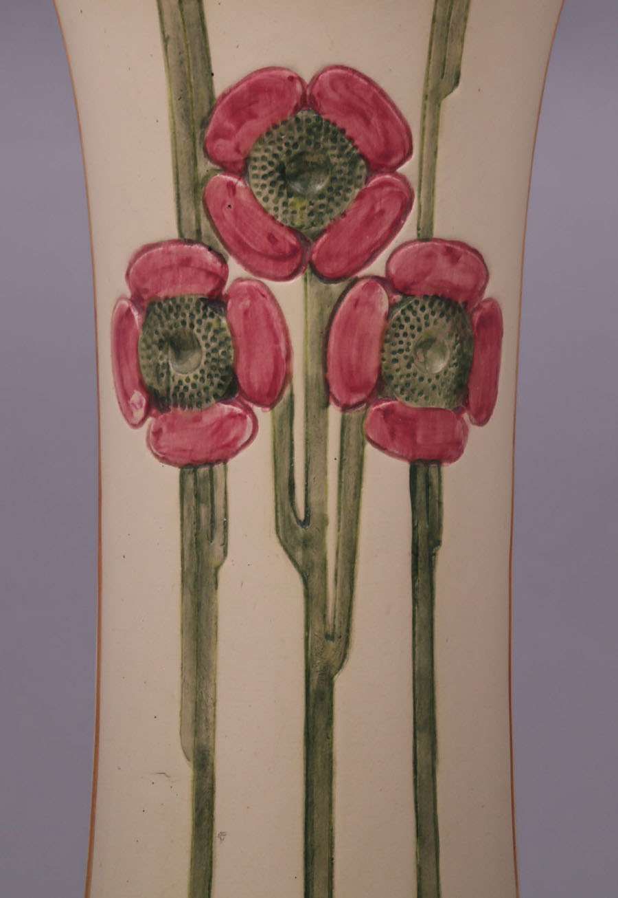 Weller Roma Umbrella Stand with dramatic floral design. Unsigned. Two hairlines. 24"H x 11"w SOLD