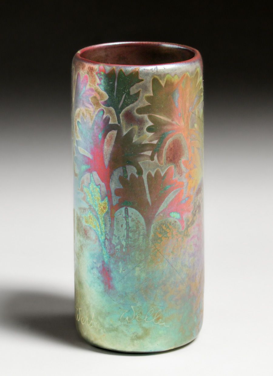 - Weller Sicard Iridescent Cylinder Vase c1905