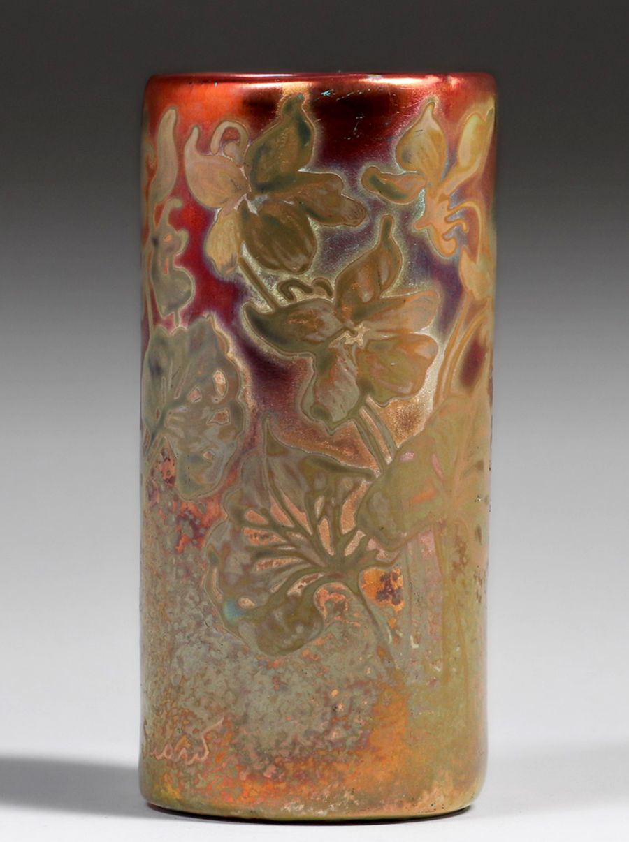 - Weller Sicard Iridescent Cylinder Vase c1905
