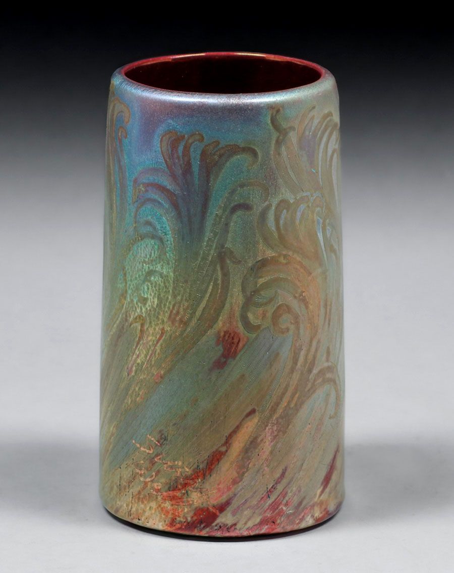 Weller Sicard Iridescent Vase c1905. Signed. Perfect condition. 5.5″h x 3 1/8″d $1200