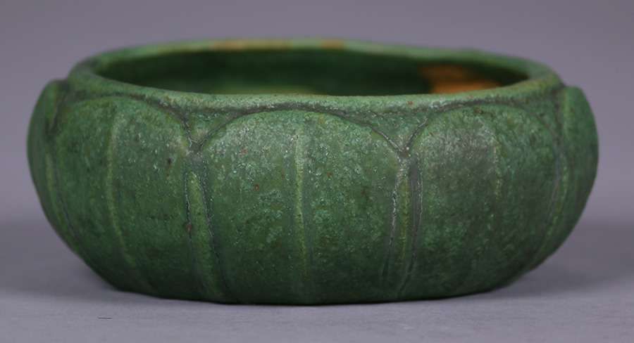 Small Wheatley matte green bowl. Glazed over signature. Perfect condition. 6″d SOLD