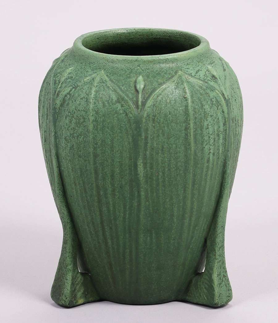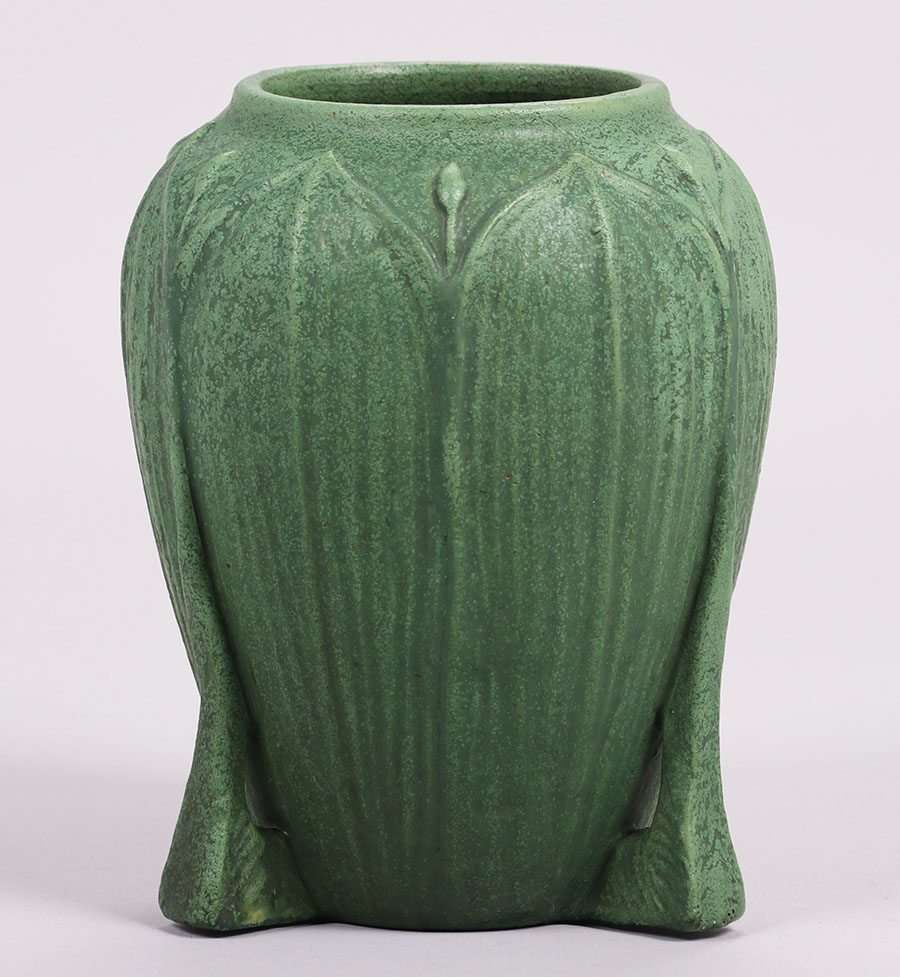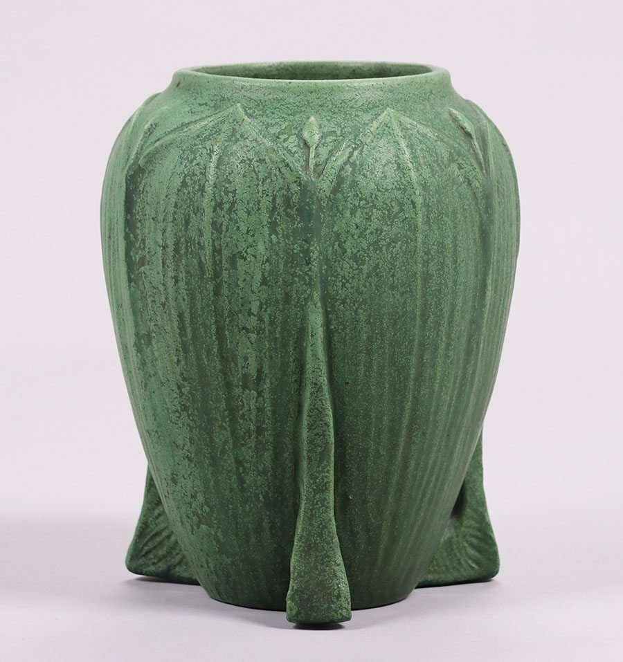 Large Wheatley Pottery matte green buttress vase. Signed. Perfect condition. 11"h x 8.5"d SOLD