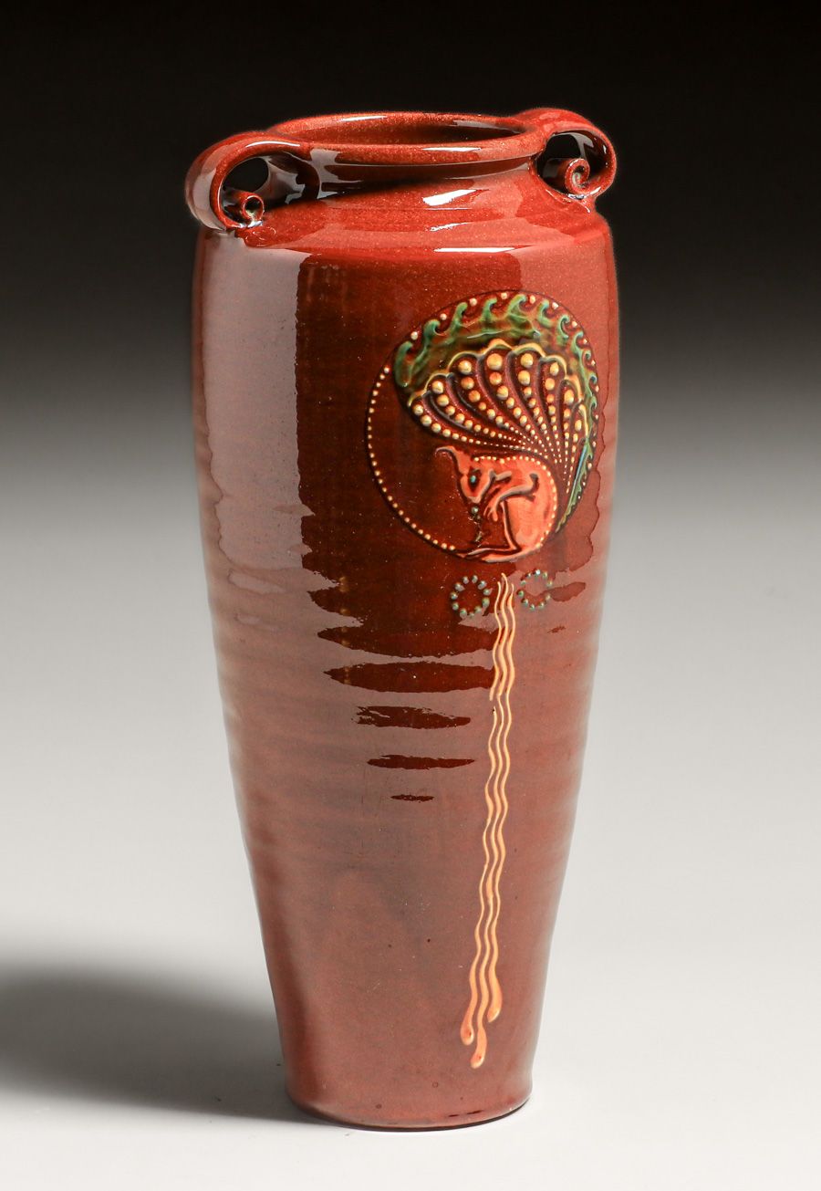 William Baron Barnstaple Devon Art Pottery Two-Handled Art Nouveau Vase 1911. Signed. Perfect condition. 13.5"h x 6"w SOLD