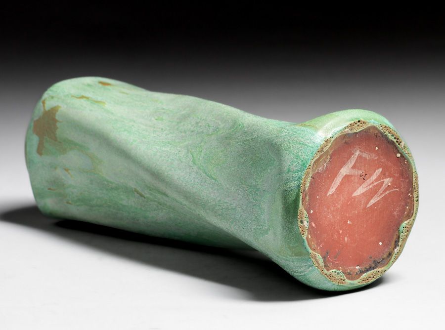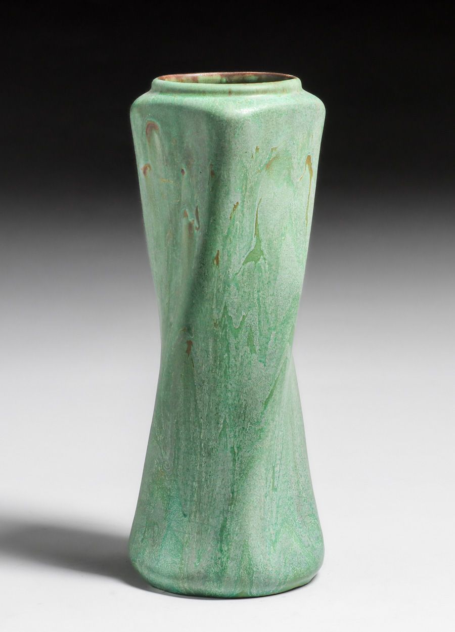 Zanesville Matte Green Twisted Vase c1910s. Unsigned. Perfect condition. 11.75"h x 4.5"d SOLD