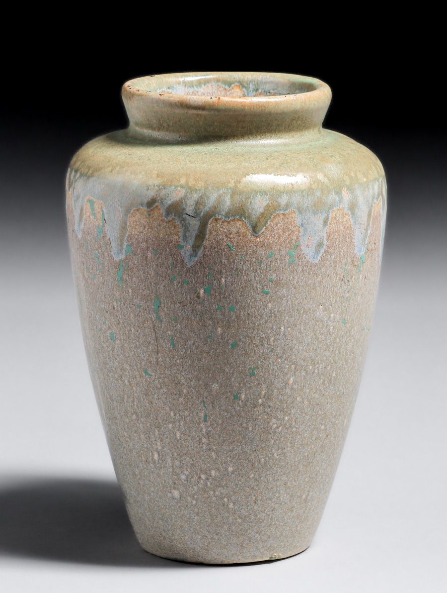 - Zanesville Stoneware Co Green Drip Vase c1920s