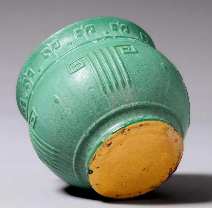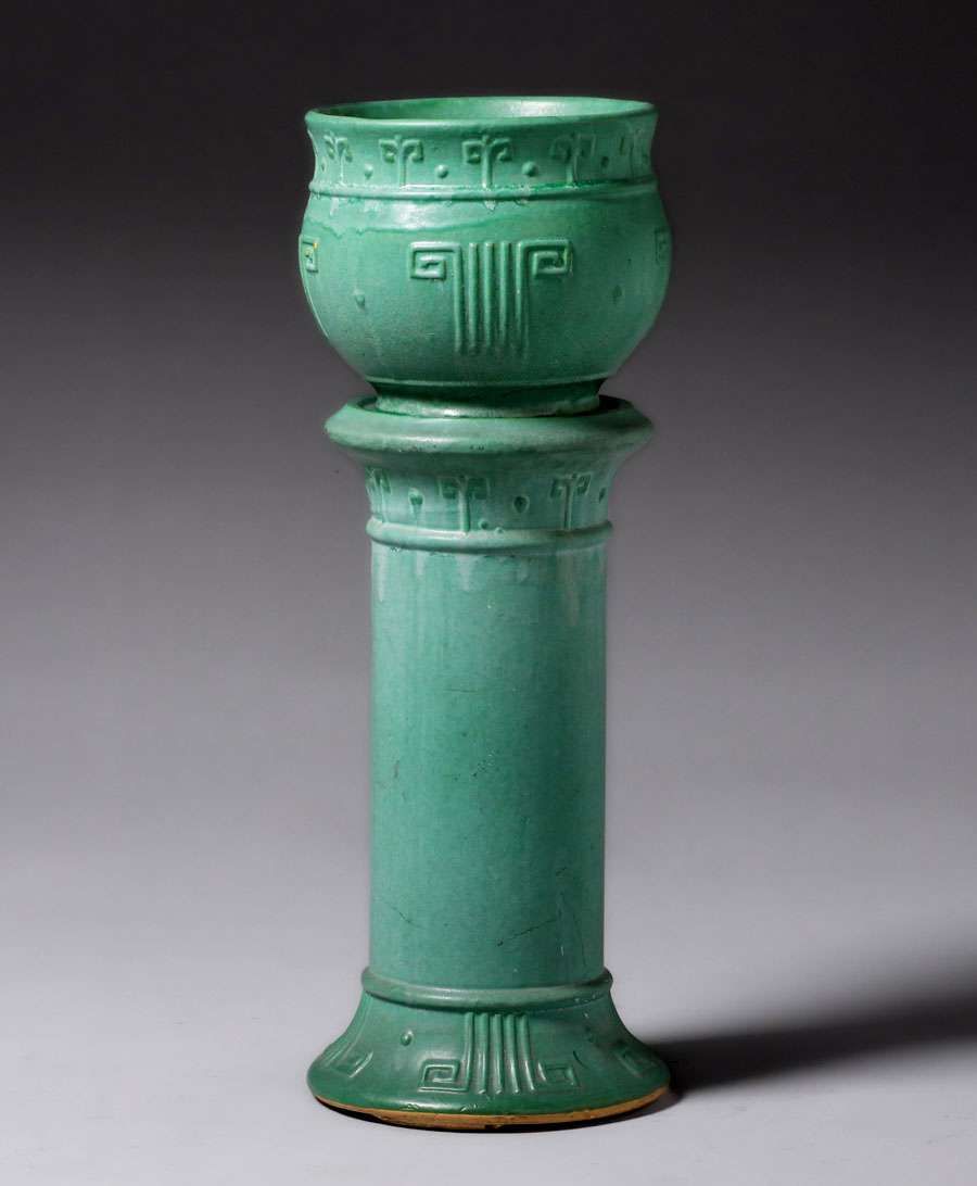 - Zanesville Stoneware Matte Green Jardiniere & Pedestal c1910