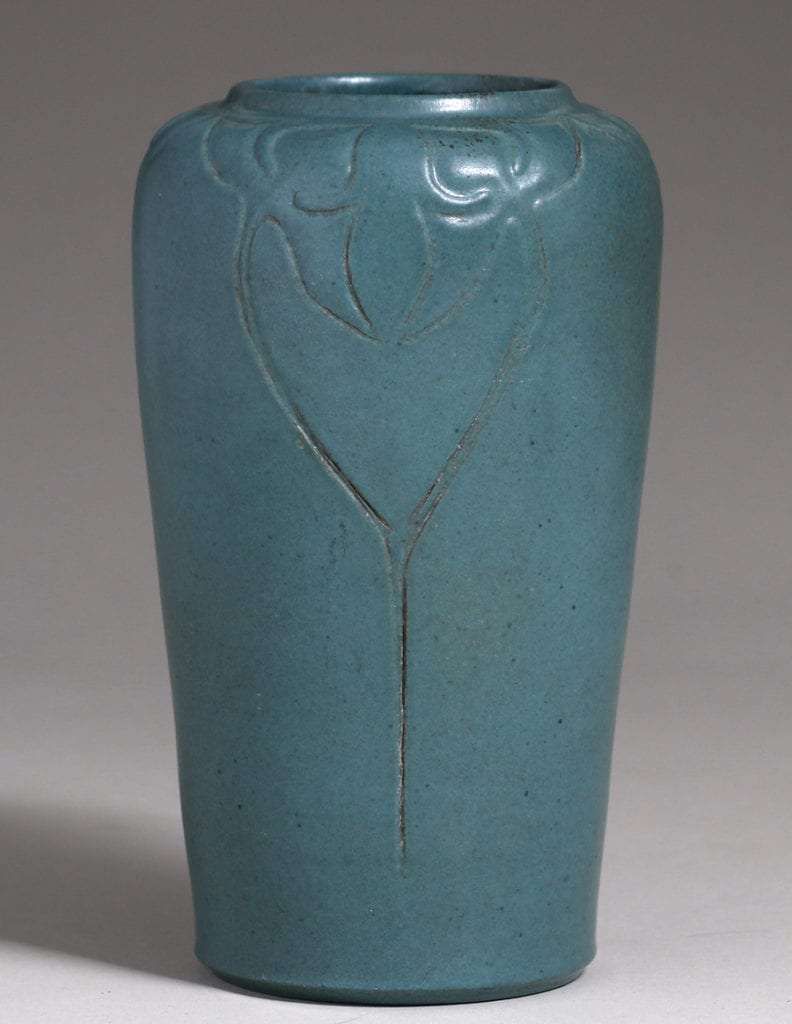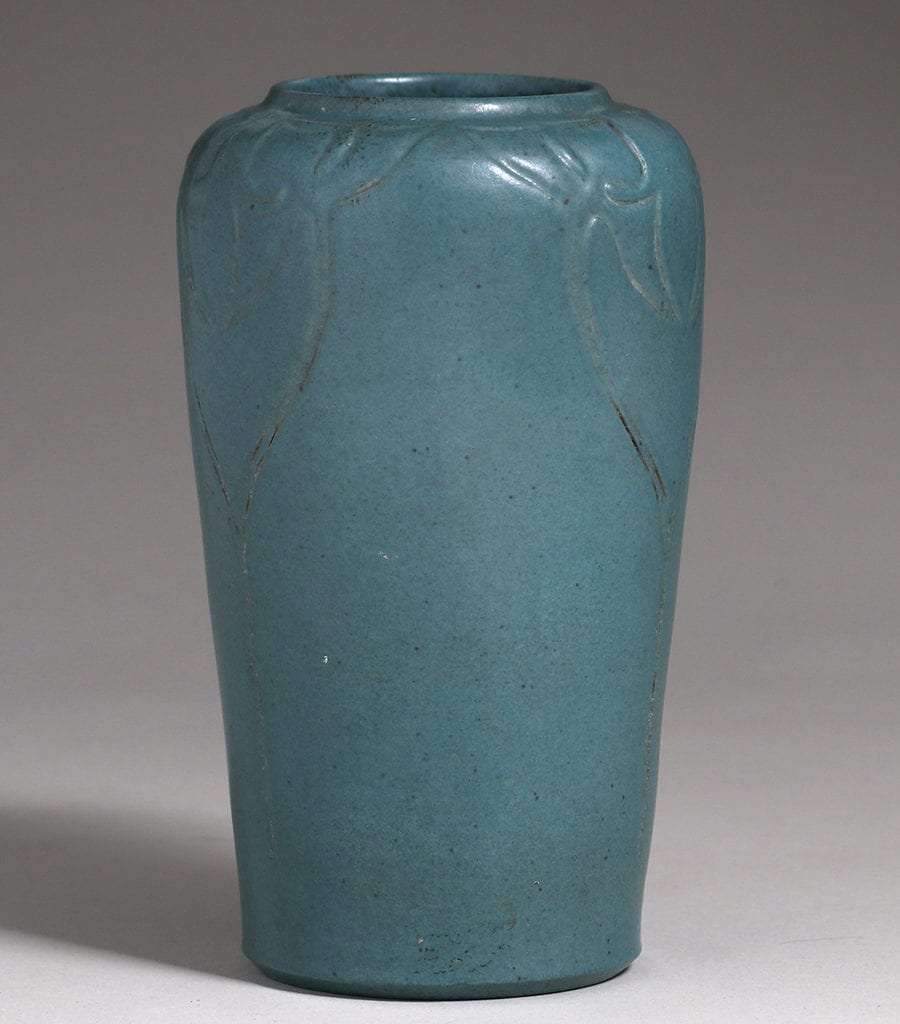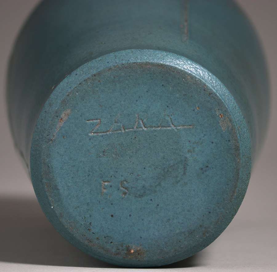 - Zark Pottery Matte Blue Carved Vase Frederick Sylvester c1907-1910