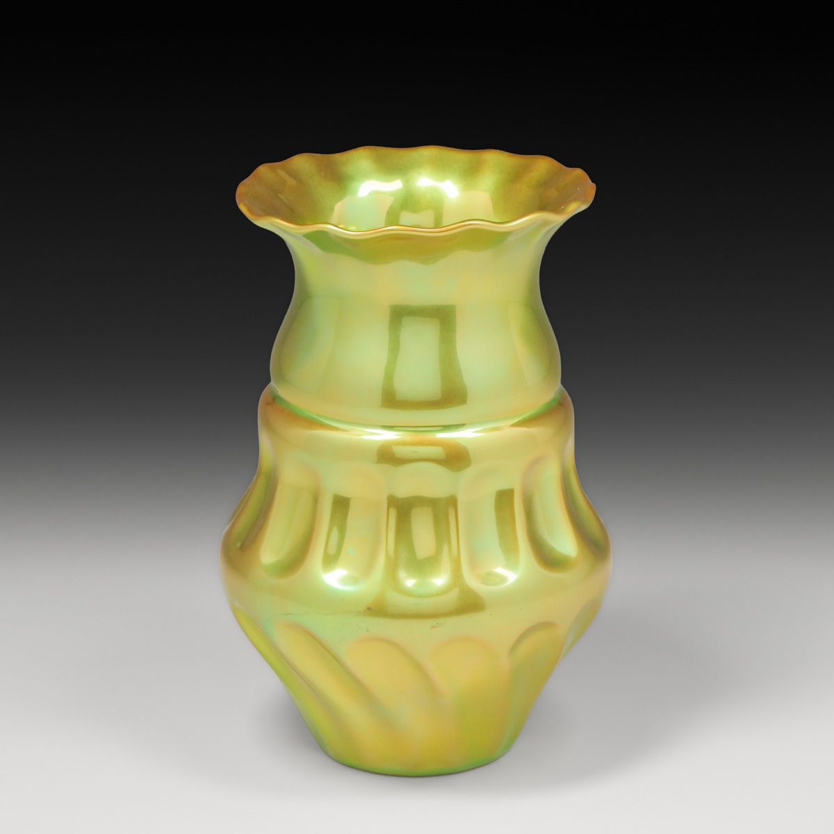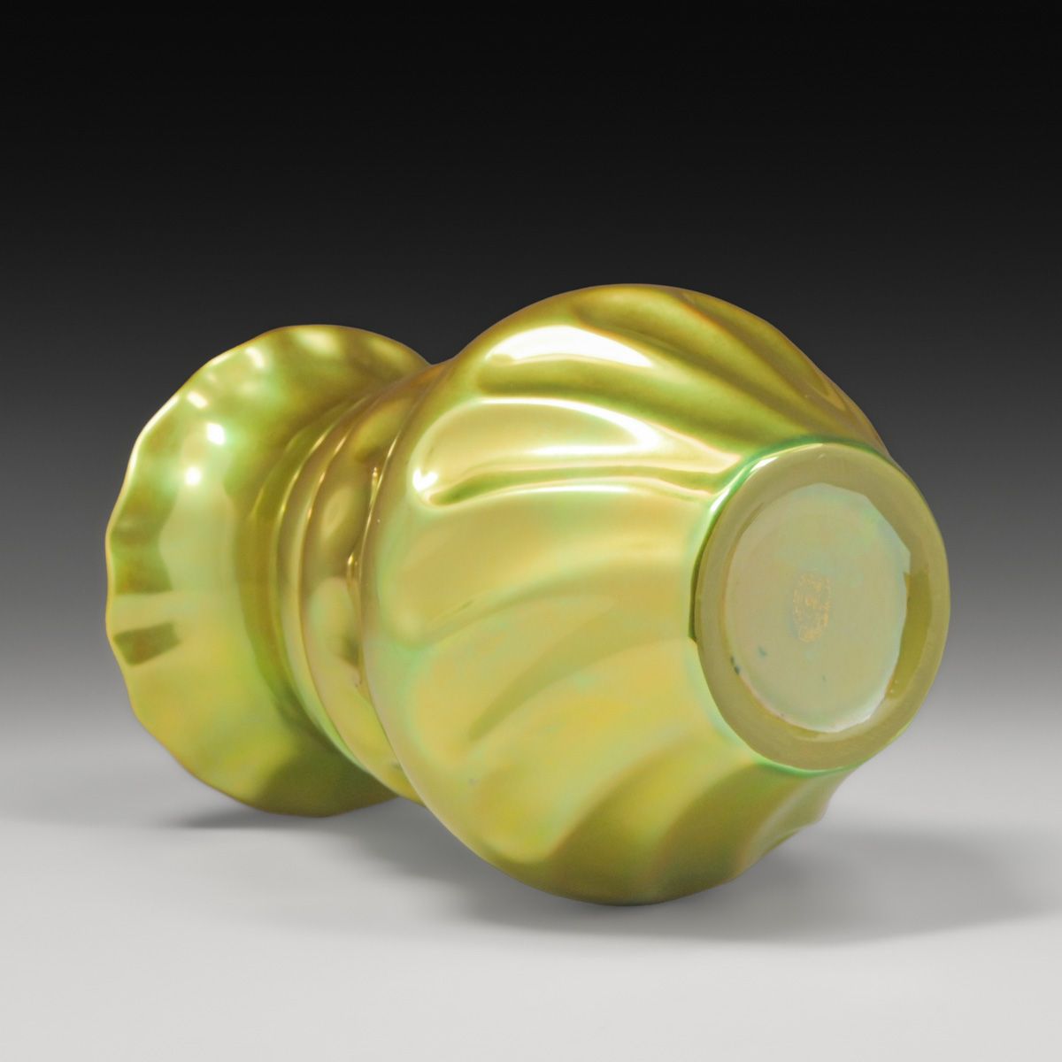 - Zsolnay - Hungary Iridescent Flared Green Vase c1920s