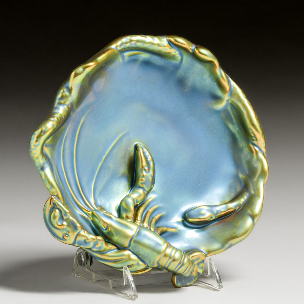 - Zsolnay - Hungary Iridescent Green Lobster Tray c1905