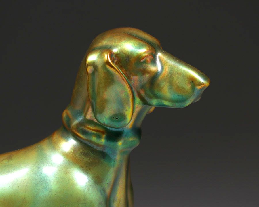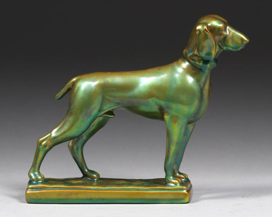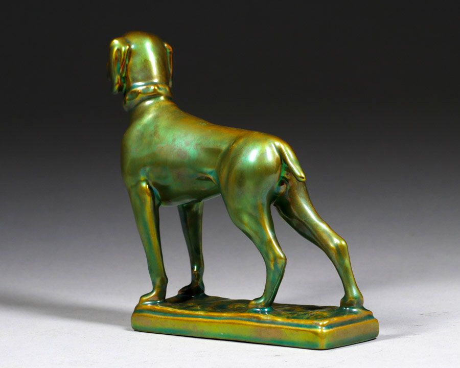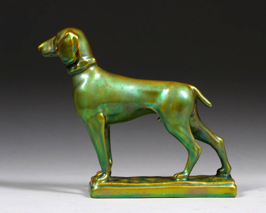 - Zsolnay Pottery – Hungary Iridescent Figural Dog c1905