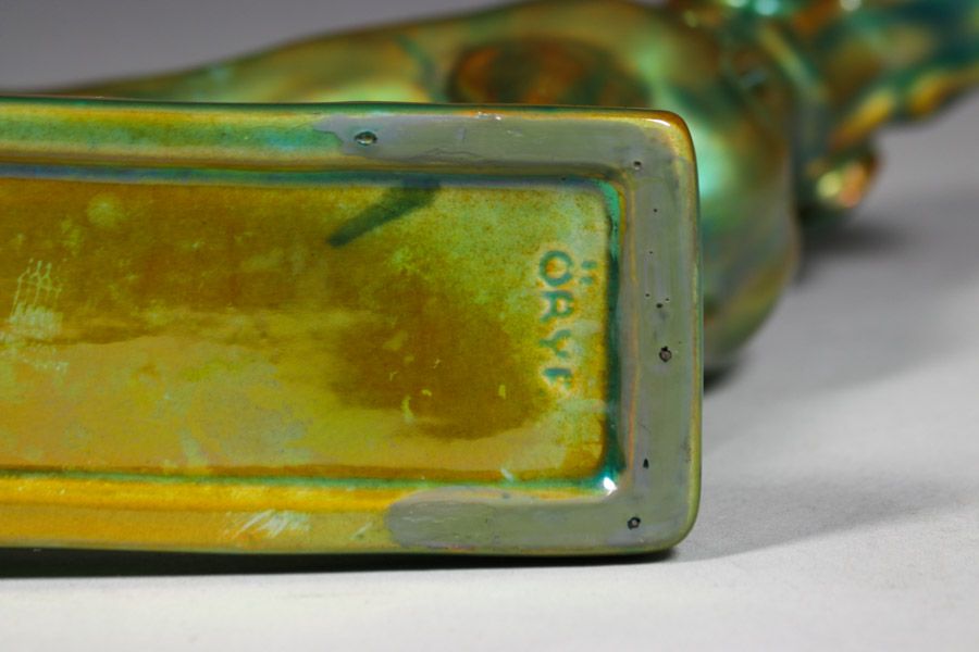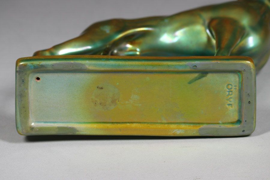 Zsolnay Pottery – Hungary Iridescent Figural Dog c1905. Signed. Perfect condition. 7"h x 8"w x 2" SOLD