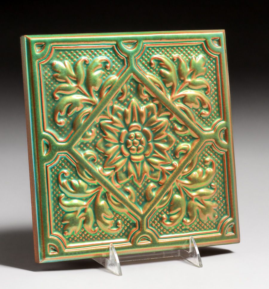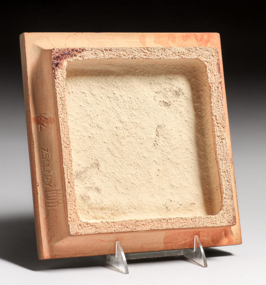 - Zsolnay Pottery – Hungary Iridescent Floral Trivet Tile c1905