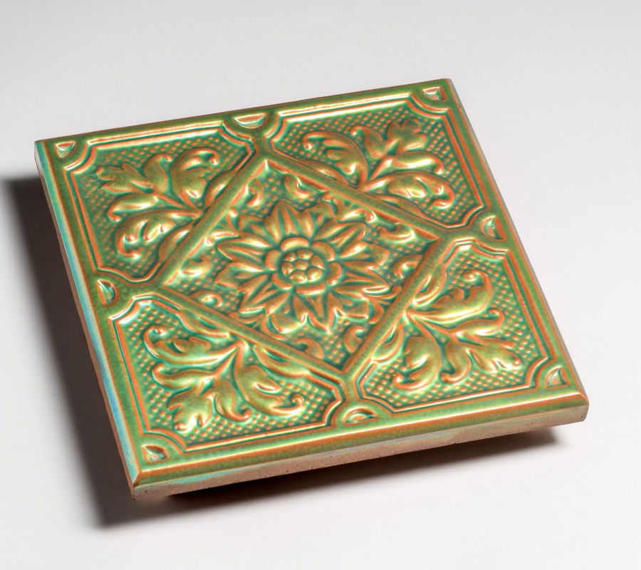 Zsolnay Pottery – Hungary Iridescent Floral Trivet Tile c1905. Signed. Perfect condition. 9.25" x 9.25" x 2"