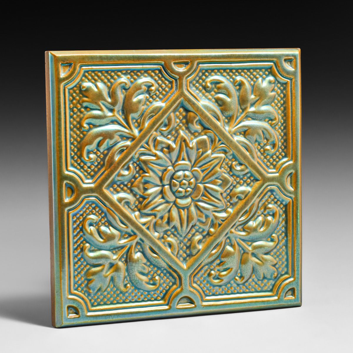 - Zsolnay Pottery – Hungary Iridescent Floral Trivet Tile c1905