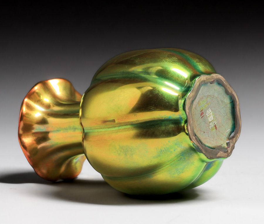Zsolnay Pottery Irisdecent Vase c1910. Signed. Perfect condition. 6.25”h x 4”d SOLD